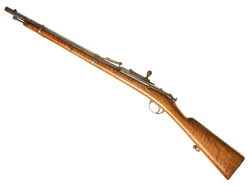 Винтовка Бердана №2 (со скользящим затвором), изготовленная на Ижевском оружейном заводе в середине 1880-х годов. После снятия с вооружения переделана в охотничью винтовку с сохранением прежнего калибра. Хорошее состояние.