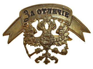 Кокарда "Государственный герб" с лентой "За отличие", желтый прибор, Россия...