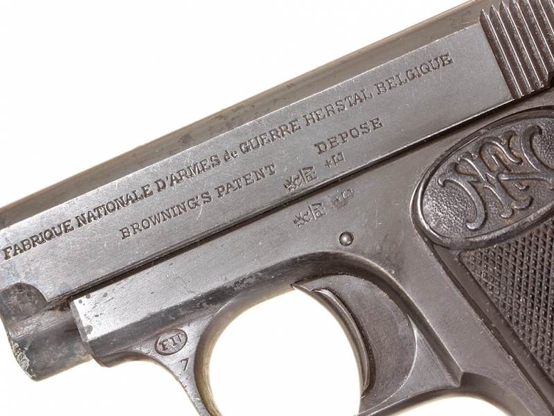 Карманный пистолет системы Браунинга образца 1906 года калибром 6,35 мм. В оригинальном воронении, очень хорошее состояние.