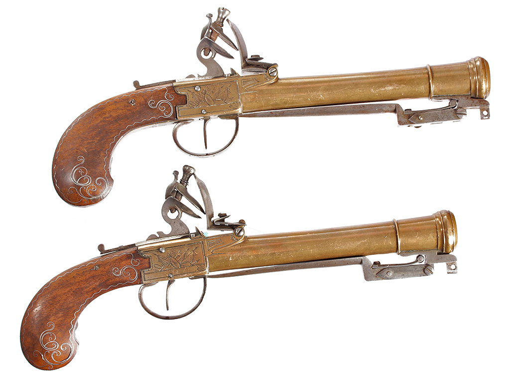 Пара кремневых пистолетов с откидными штыками, Великобритания