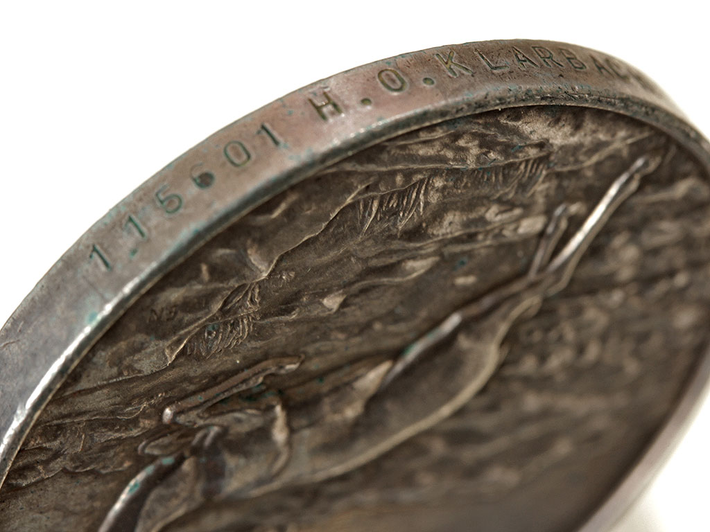 Медаль за службу в Африке в годы Второй мировой войны. Серебро, на оригинальной колодке. На гурте - фамилия и данные награжденного: "115601 H.O.Klarbach".