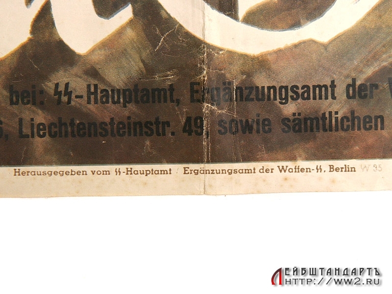 Следует отметить, что оригинальные плакаты, тем более имеющие прямое отношение к СС, встречаются реже кортиков, знаков и униформы. В коричневой раме с черным паспарту будет смотреться грандиозно. Можем оказать помощь в оформлении.