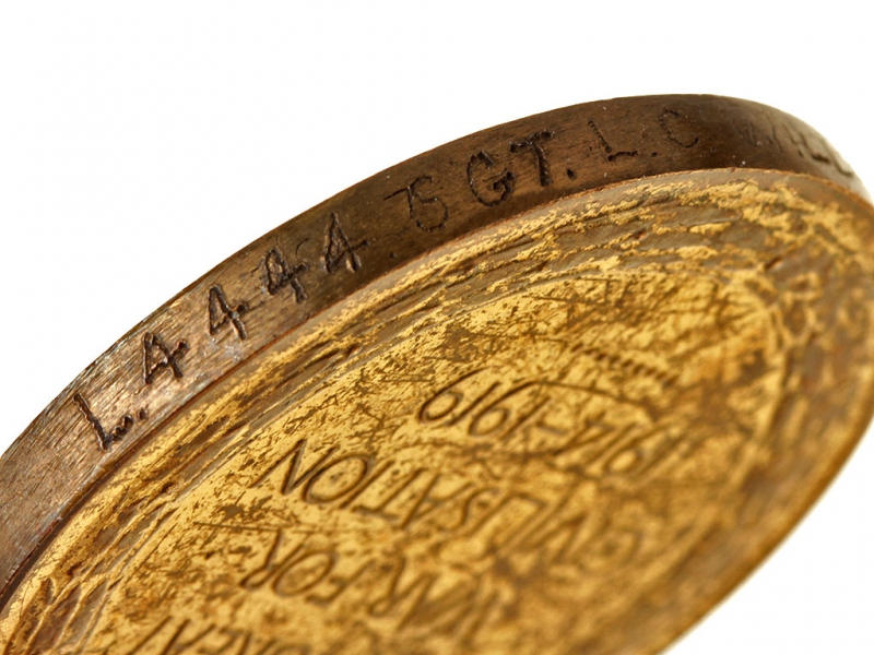 Союзническая медаль за победу в Первой мировой войне. Бронза. С фамилией награжденного на гурте. Очень хорошее состояние.