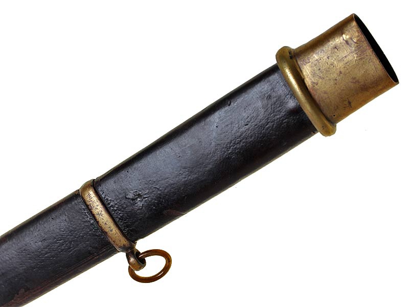 Ножны деревянные, грунтованные, выкрашенные в черный цвет, с латунным прибором.