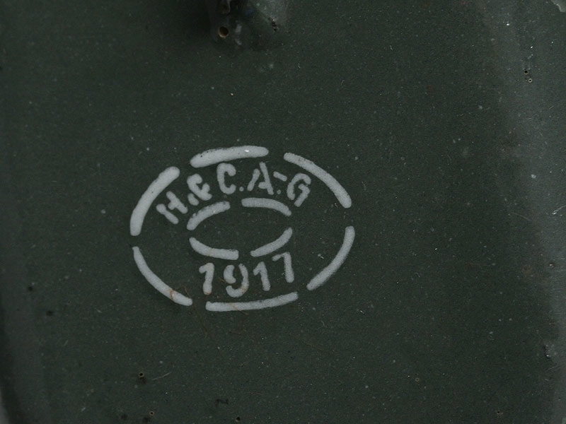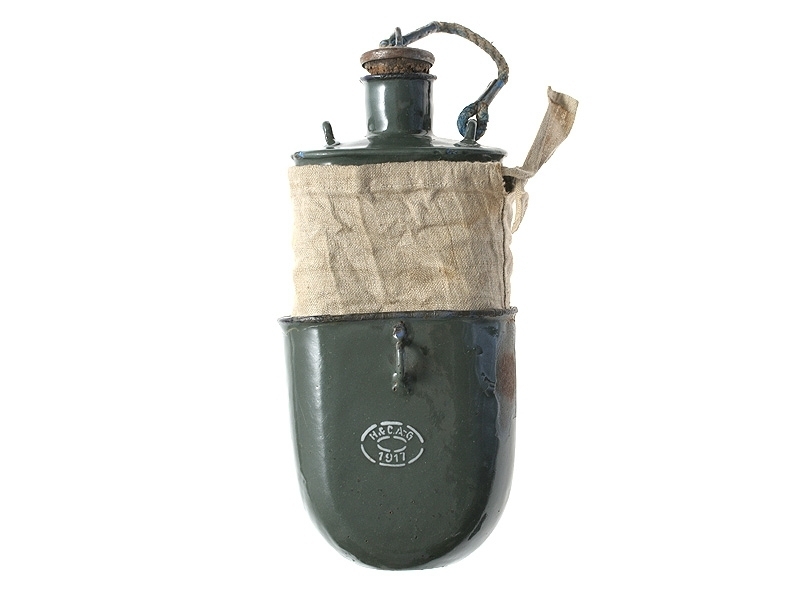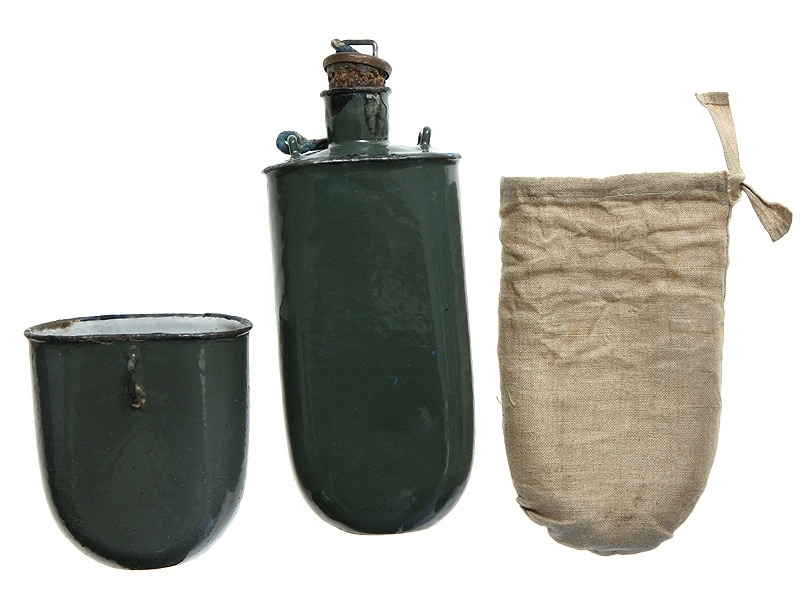 Солдатская фляга KuK периода Первой мировой войны в отличном состоянии, в комплекте со стаканом. Корпус эмалированный, с клеймом "H.F C. A-G" и годом выпуска - 1917. Сохранился суконный чехол.