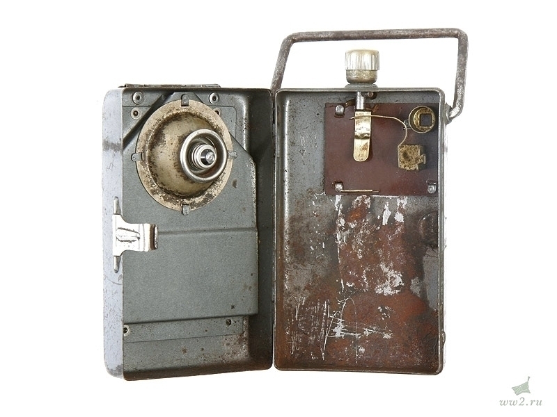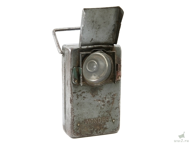 Армейский электрический фонарик фирмы "Wonder Francaise" военного выпуска с предохранительной шторкой. Металлический корпус, выкрашенный в черный цвет, сохранилась дерматиновая лямка для крепления к пуговице мундира. Во время Второй мировой использовался и в немецкой армии, так как большое количество таких фонариков досталось немцам в качестве складских трофеев после оккупации Франции. Очень хорошее состояние.
