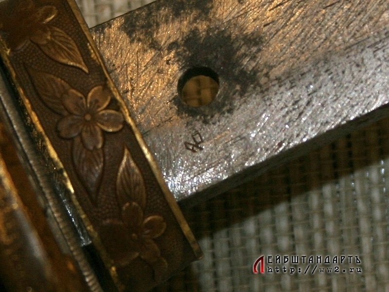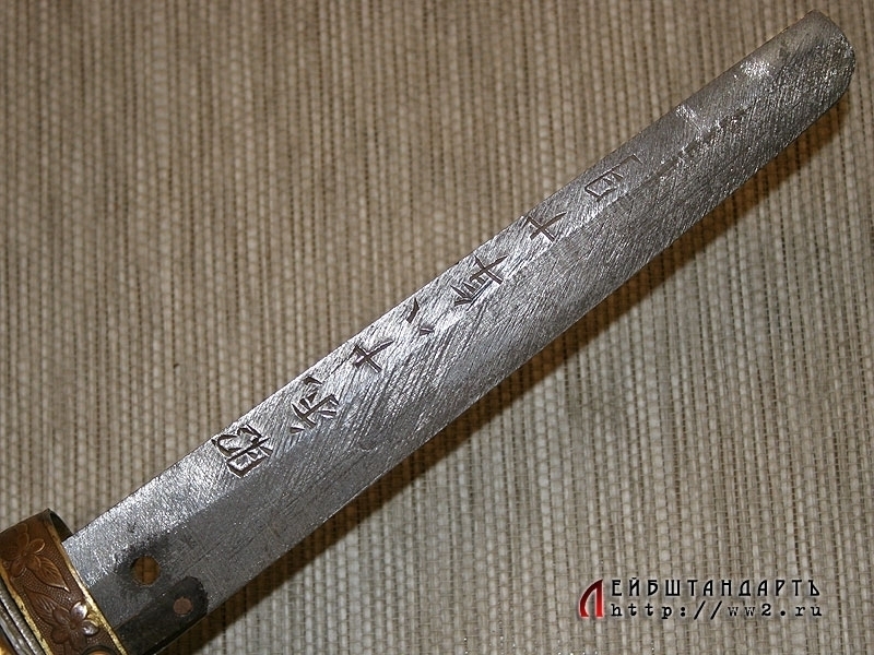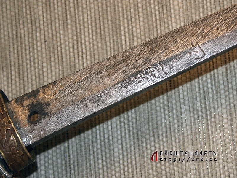 Мечи данного типа использовались японцами как реальное боевое оружие вплоть до 1945 года. Вероятнее всего, данный экземпляр меча выкован из рельсов Китайско-Восточной железной дороги, так как имеет длинную иероглифическую надпись на хвостовике. Эти клинки считались высококачественными промышленными изделиями и выпускались Арсеналом в Мукдене.
