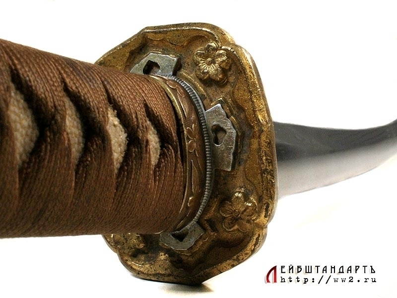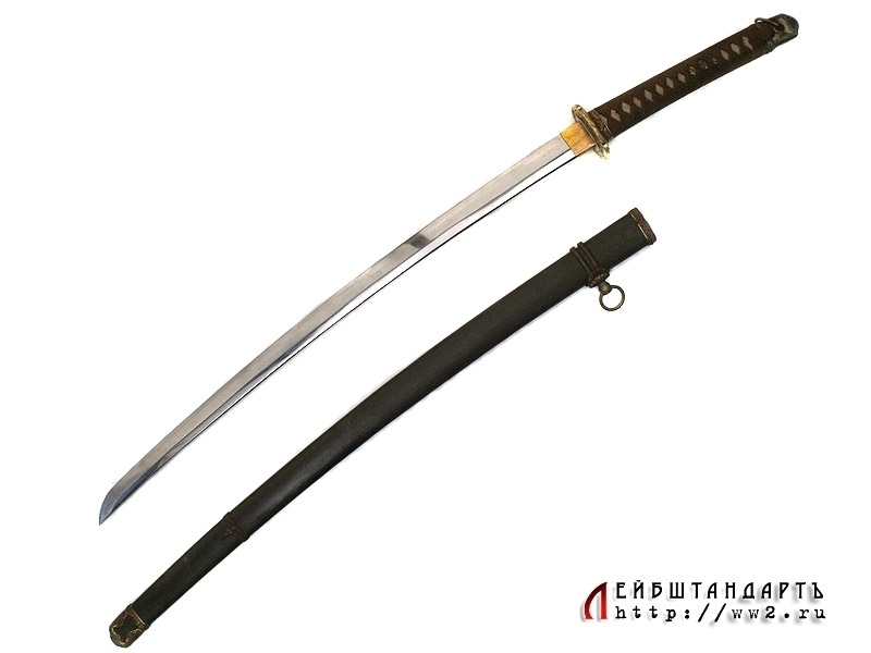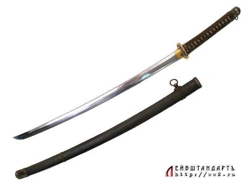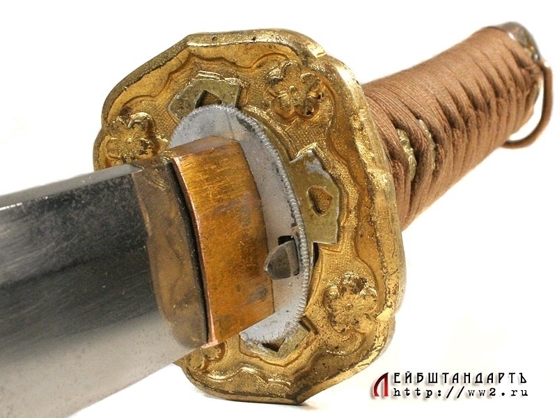 Армейский меч для старших офицеров син-гун-то, дословно "новый военный меч". Появившись в начале 1930-х годов, эти мечи по форме копировали древние тати. Клинок промышленного изготовления, имеет штамп военной приемки у основания клинка. Ножны металлические, выкрашенные в коричневый цвет. По ним можно уверенно сказать, что меч изготовлен до 1944 года (аси имеют два ободка). Все части прибора ножен и рукояти, включая муфту хабаки, позолочены. Несмотря на наличие хабаки, меч удерживался в ножнах при помощи защелки с кнопкой в кольце рукояти (фути). Цуба латунная вызолоченная формы аои.