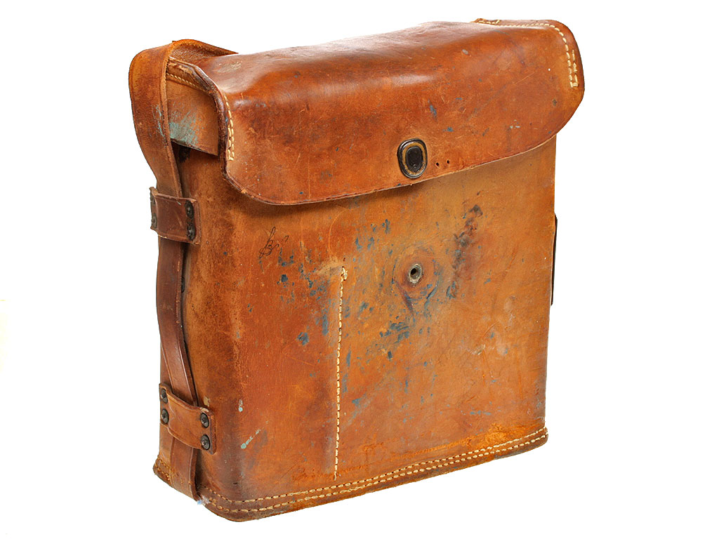 Полевой телефон в кожаном футляре, изготовленный в США и поставлявшийся в СССР по ленд-лизу в годы Второй мировой войны. Очень хорошее состояние.