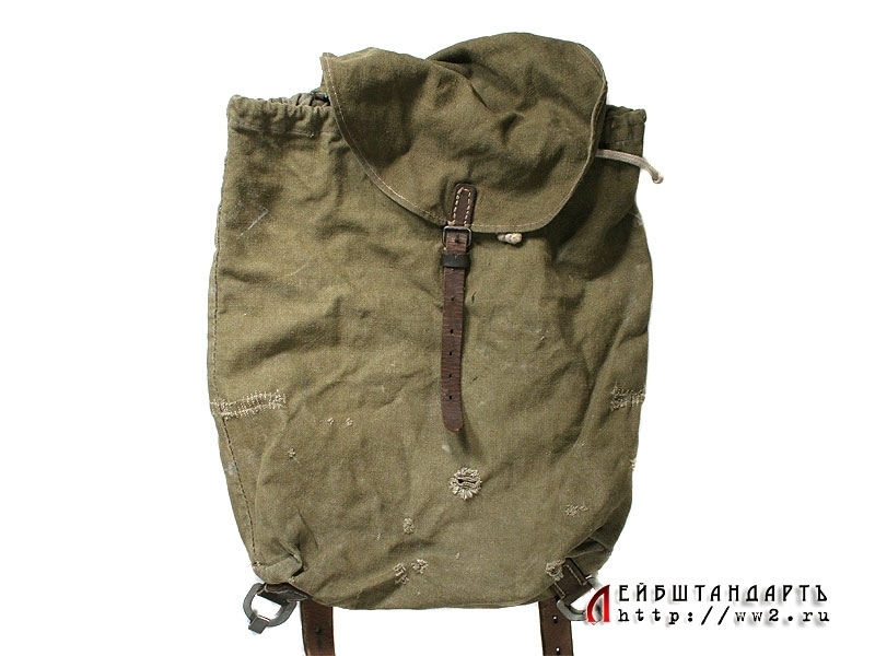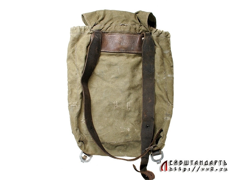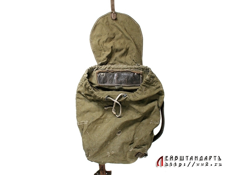 Артиллерийский рюкзак в хорошем состоянии. Сшит из брезента и снабжен кожаными лямками. Без клейм. Лямки изготовлены из оборотной стороны полевой разгрузочной Y-портупеи.