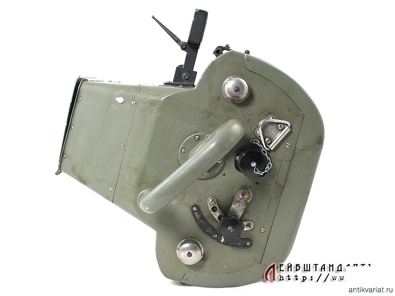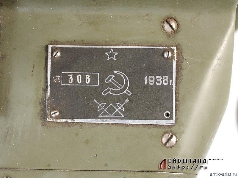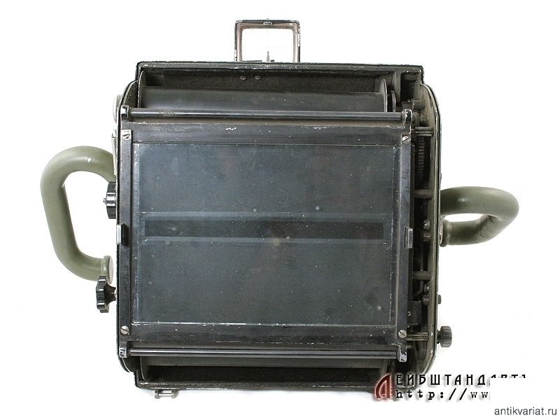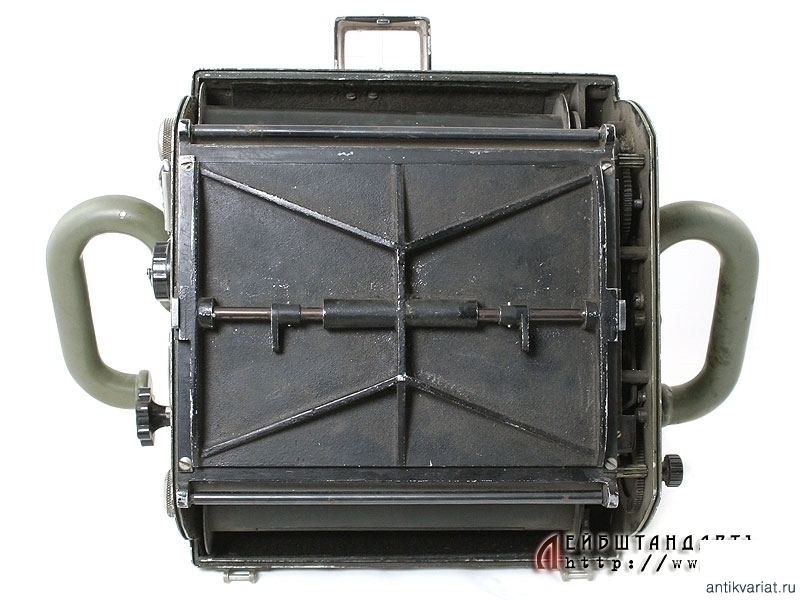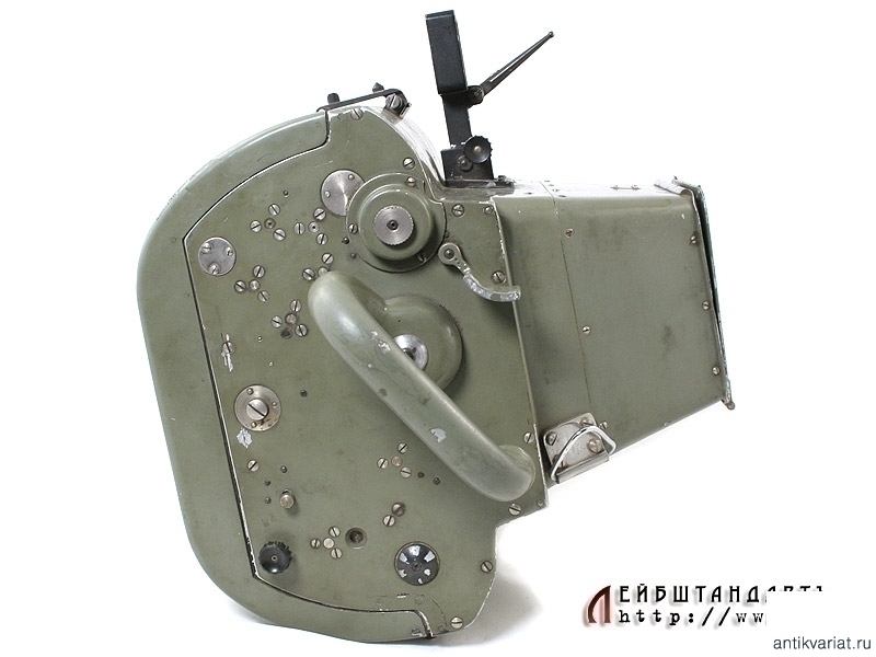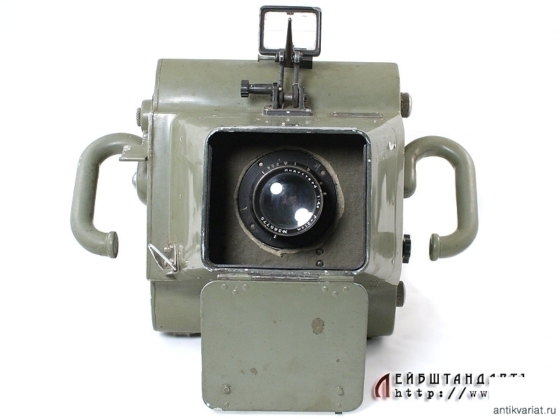 Большой фотоаппарат для аэрофотосъемки 1938 года выпуска в отличном состоянии. Оптика заключена в массивный металлический футляр, выкрашенный защитной краской. Сбоку футляра имеется специальная ручка, с помощью которой взводится спусковой механизм. Объектив "Индустар" закрывается крышкой. На корпусе имеется бирка с годом выпуска и порядковым номером изделия: 306.