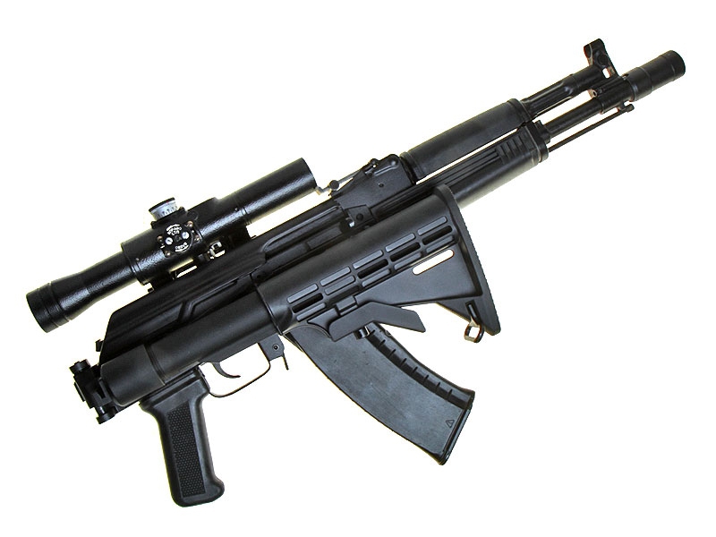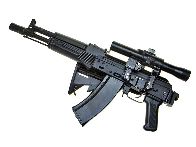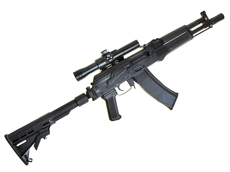 Автомат Калашникова АК-105 со складывающимся телескопическим прикладом новейшей разработки и штатным дневным оптическим прицелом (белорусского производства).