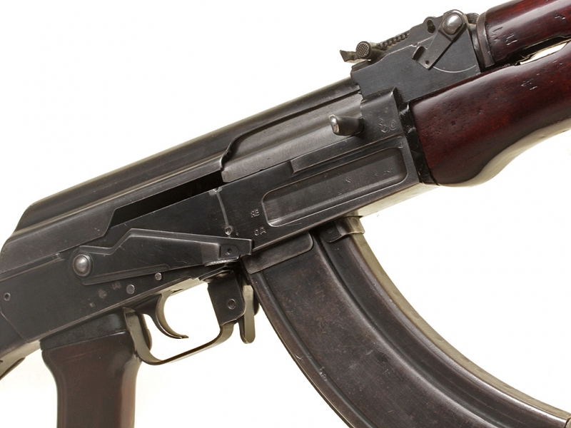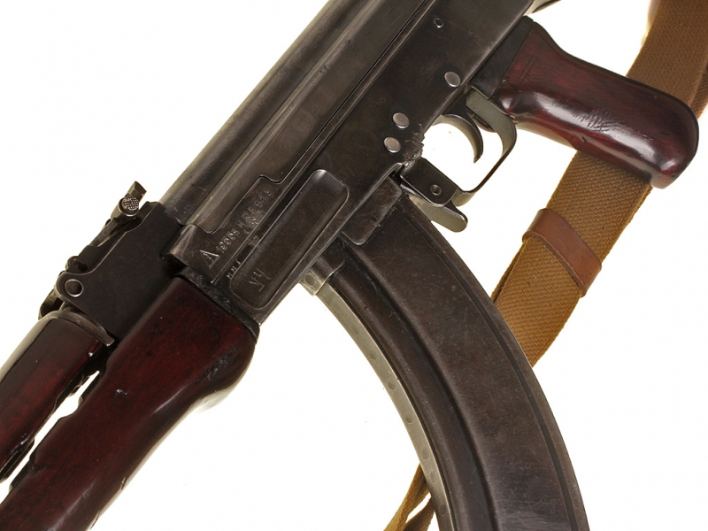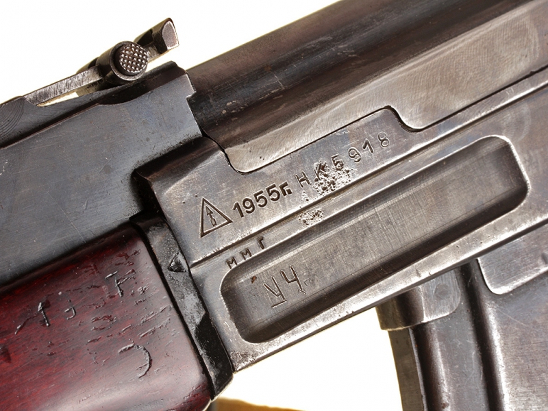 Отличный экземпляр автомата системы Калашникова - АК 47, изготовленный в 1955 году. Отличается от современных модификаций добротностью и качеством изготовления, даже крышка ствольной коробки выполнена фрезерованной (у более поздних моделей - штампованная). Оригинальное, слегка потертое воронение, металлический магазин. Несмотря на большой тираж производства, довольно редкий на сегодняшний день.
