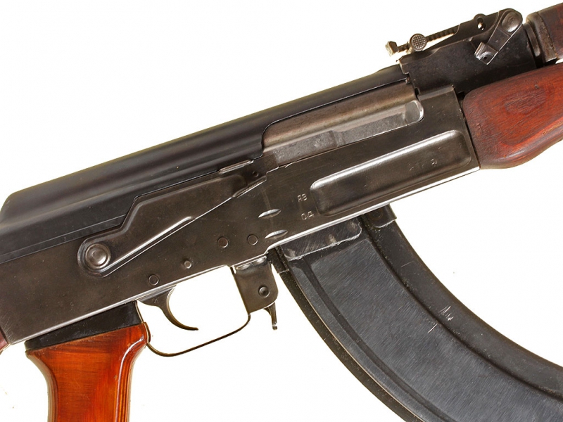 Автомат системы Калашникова - АК 47, модификация, бывшая в производстве в 1954 - 1959 годах. Отличается от современных Калашниковых добротностью и качеством изготовления, крышка ствольной коробки выполнена фрезерованной (у более поздних моделей - штампованная). Оригинальное, слегка потертое воронение, металлический магазин. Несмотря на большой тираж производства, довольно редкий на сегодняшний день.