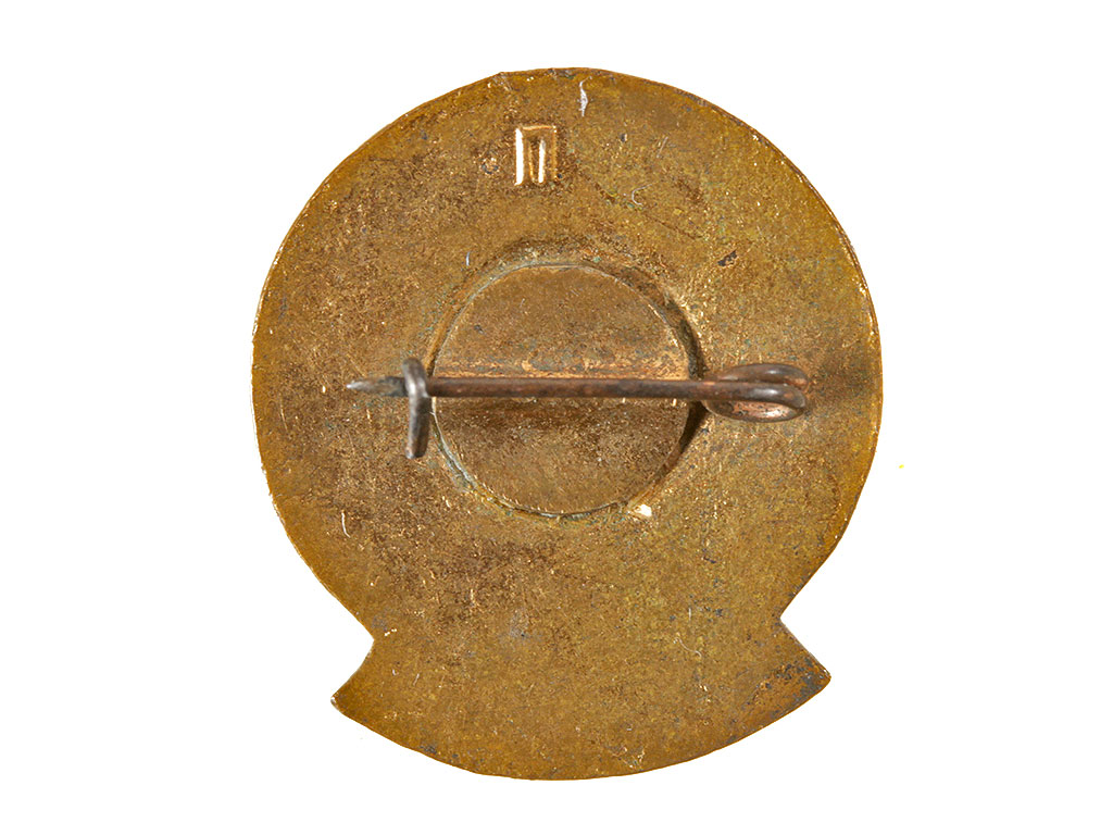 Знак "Участнику уборки урожая на целине" ЦК ВЛКСМ. Латунь, эмаль, золочение.