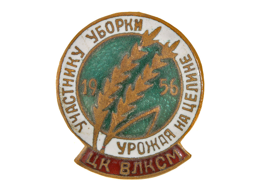 Знак данного типа учрежден и вручался в 1956 году комсомольцам - участникам уборки урожая на целинных землях Казахстана и Западной Сибири.