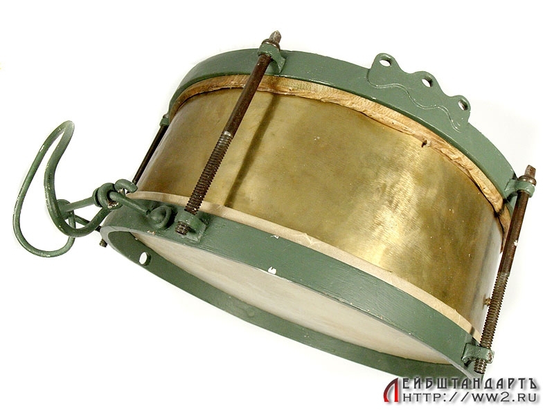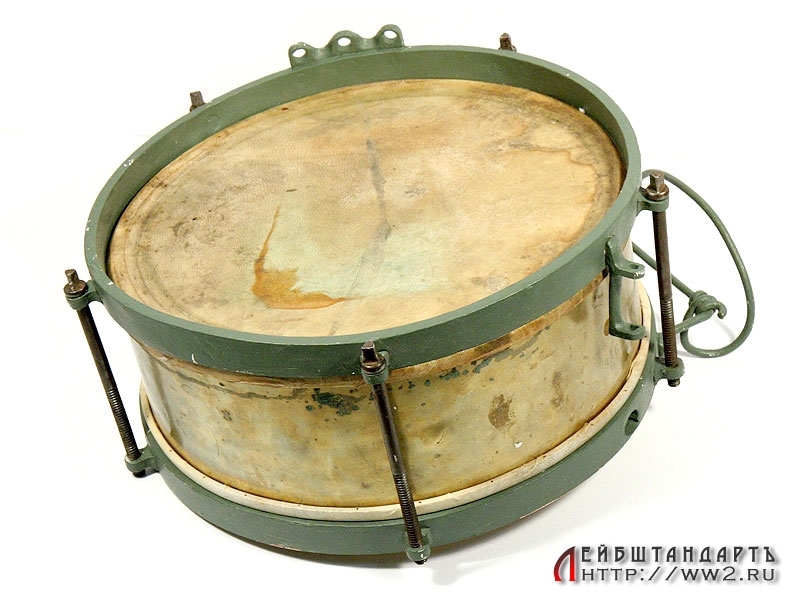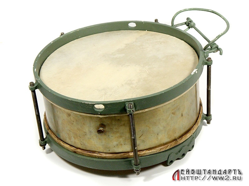 Замечательно сохранившийся пехотный полковой барабан начала ХХ века. Обтянут свиной кожей, без разрывов и трещин, с латунной боковиной и ободками, выкрашенными в цвет фельдграу. Судя по гравировке на боку барабана, принадлежал 4 запасному батальону 9 пехотного полка. Красивый антуражный предмет в приятной коллекционной сохранности.