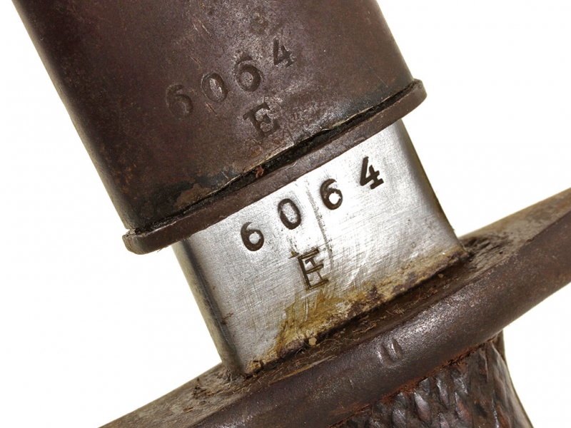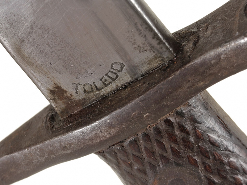 Штык образца 1941 года к винтовке системы Маузера образца 1916 года. Клинок прямой, с долом на каждой стороне, однолезвийный, с сужением в средней части и расширением в нижней трети. У основания клинка имеется клеймо Национальной фабрики в Толедо и номер "6064", совпадающий с номером на устье ножен.
