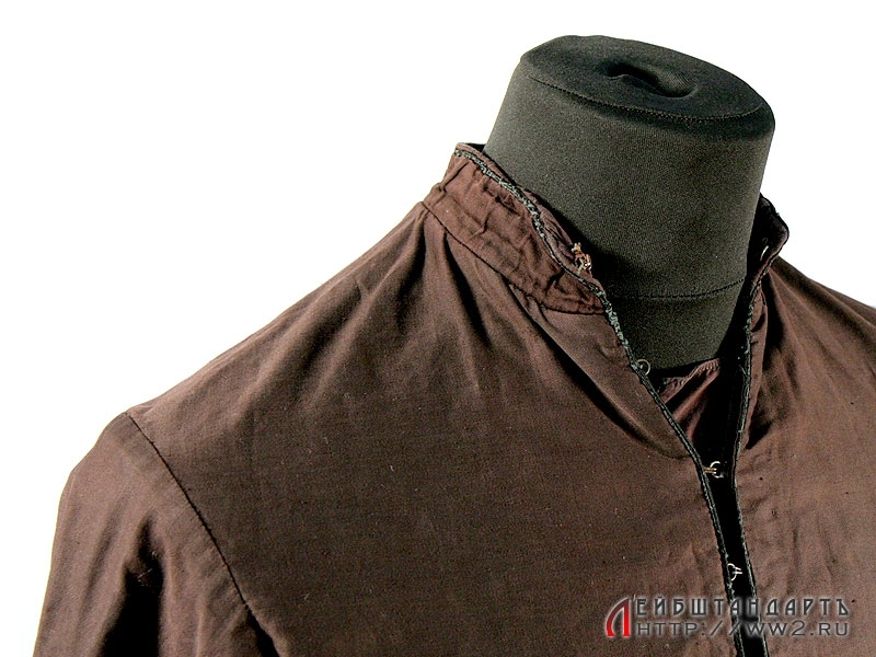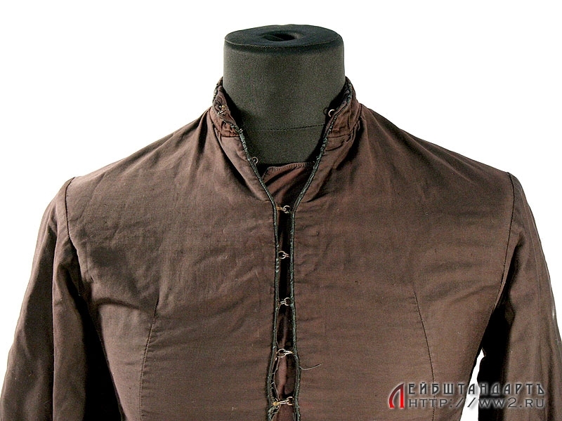 Чрезвычайно редкий образец советской кавалерийской униформы - бешмет казачий образца 1936 года. Кафтанного покроя, застегивается на крючки. Командирский, о чем свидетельствует кант по воротнику.