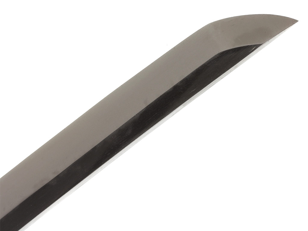 Конструкция клинка традиционная, с равномерным изгибом (формы синоги дзукури). На всей протяженности клинка прослеживается широкая область закаленного края якиба и его узор хамон, демонстрирующий волны с закругленными вершинами и туманными белыми облаками. В основании клинок имеет выполненную из цветного металла плоскую позолоченную муфту хабаки, украшенную гравировкой в виде изображения струй моросящего дождя. Хвостовик клинка в процессе бытования укорочен (обрезан под прямым углом), имеет два крепежных отверстия мэкуги-ана (одно из которых запломбировано), которые предназначены для крепления клинка в рукояти с помощью деревянного колышка. Хвостовик имеет авторскую иероглифическую подпись кузнеца-изготовителя, нанесенную методом чеканки: "Биттю-но Ками Татибана Тоити Ясухиро", с оборотной стороны хвостовика - дополнительная надпись (в переводе): "Сделан из импортной стали нанбантэцу". Кузнец Ясухиро - представитель одного из четырех поколений мастеров, подписывавшихся этим именем. Все они работали в традиции школы Кисю - Исидо, их изделия пользовались у современников большой популярностью. В представленный период многие кузнецы экспериментировали с европейской высокоуглеродистой сталью, привозившейся голландскими и португальскими купцами. О том, что при изготовлении клинка использовалась привозная сталь, мастера могли вырезать на хвостовике соответствующую надпись.