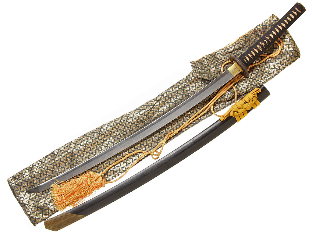 Традиционный большой самурайский меч катана в ножнах, изготовленный мастером Мицу-но ками Канэнобу из провинции Мино в конце XVII века.