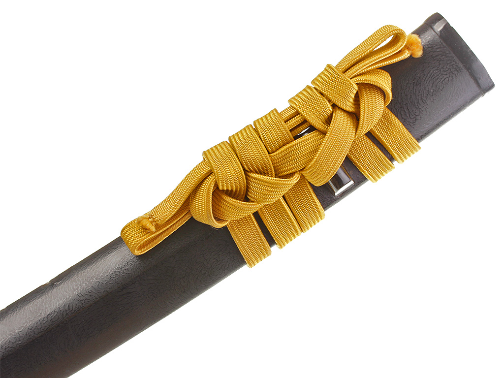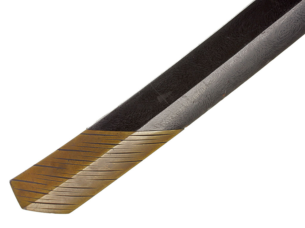 Ножны сая образованы двумя деревянными полосами, склеенными между собой. Покрыты черным лаком, фактура которого имитирует поверхность камня (куро-кансицу-исимэ-нури-сая). С внешней стороны ножен расположен выступ куригата с прорезью для шнура сагэо. Ножны завершаются латунным наконечником, украшенным косыми надпилами.