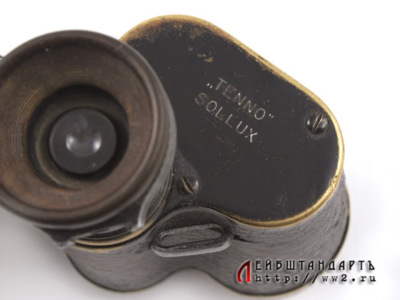 Полевой бинокль 6х30 в хорошем состоянии. Оптика не рабочая, фирмы "Tenno", на окулярах также имеются клейма: "Busch Prisma-Binocle". Футляр в хорошей сохраности, коричневой кожи, без клейм.
