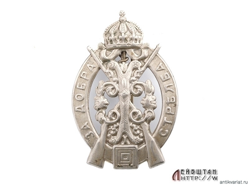 Болгарский знак "За отличную стрельбу". Белый металл. Начало ХХ века. Очень хорошее состояние.