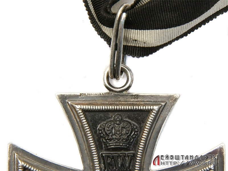 Середина креста изготовлена из железа, рамка из серебра 935 пробы. На верхней лопасти имеется также клеймо фирмы-изготовителя "Joh.Wagner & Sohn".