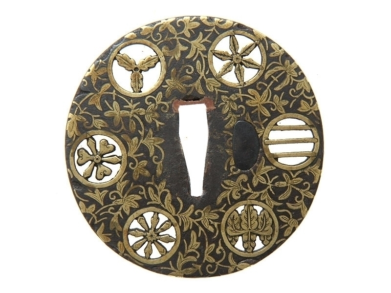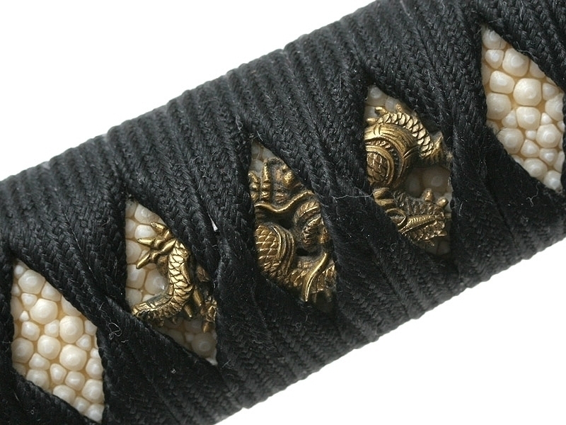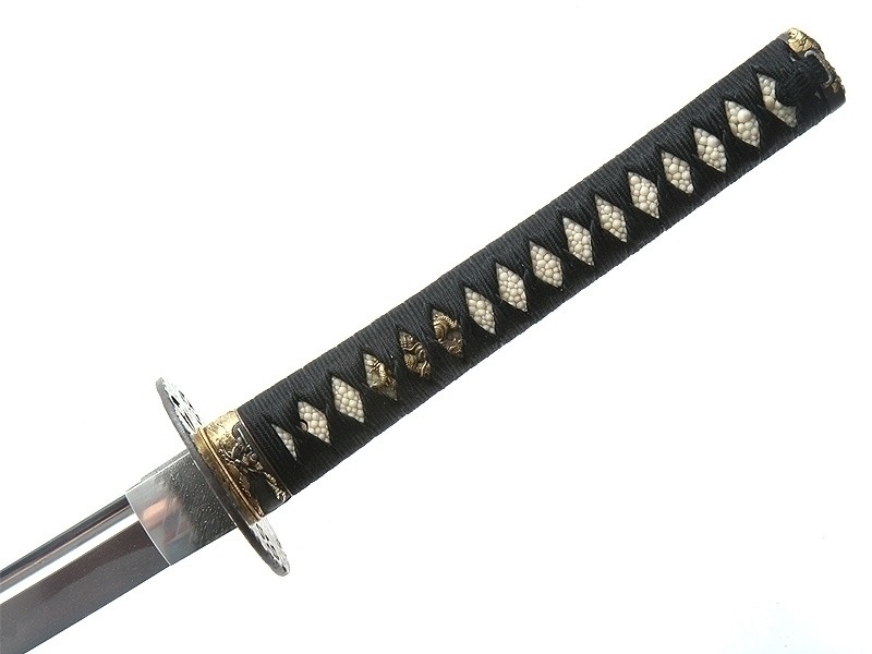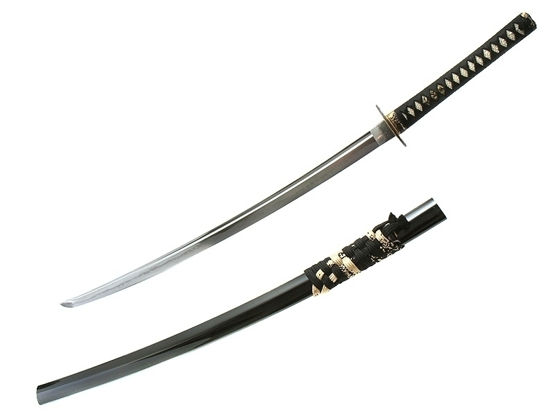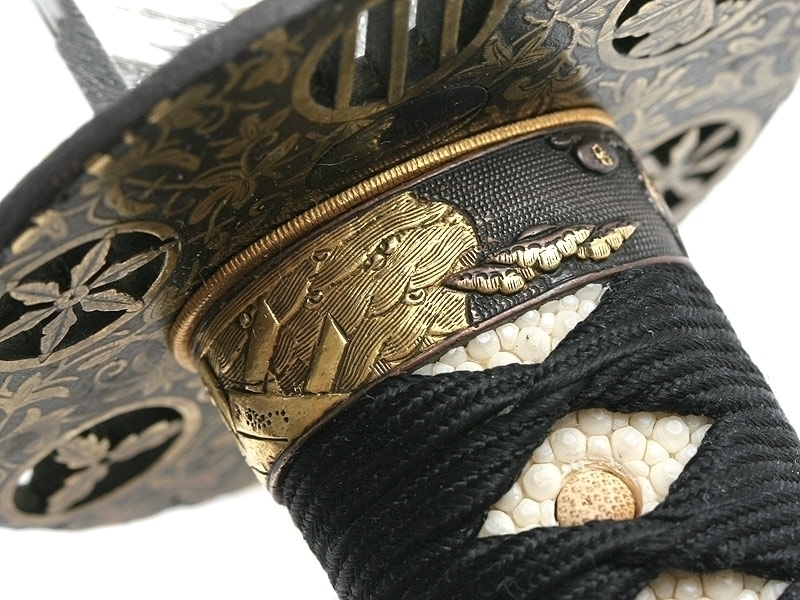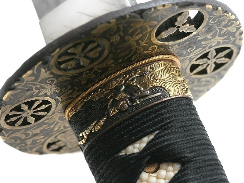 Большой самурайский меч катана работы мастера Фудзивара Томасигэ из города Каназава. Датируется 1670 годом. Клинок с очень красивой линией закалки, хвостовик не подписан мастером (мумэй), имеет два крепежных отверстия. Рукоять деревянная, обтянутая кожей ската, оплетена тесьмой. Цуба украшена изображениями самурайских гербов (мон). Деревянные основа рукояти и ножен современные, детали оправы изготовлены в период Эдо. В комплект входит сира-сайя для хранения клинка.