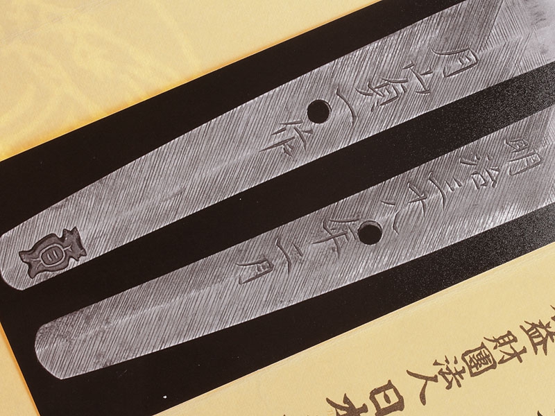 Меч сертифицирован Обществом по сохранению японских художественных мечей (NBTHK) как "Оберегаемый меч", кроме того, имеется экспертное заключение за подписью ведущего эксперта по японскому холодному оружию А.В.Толстых.