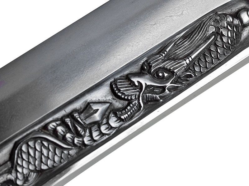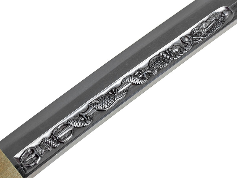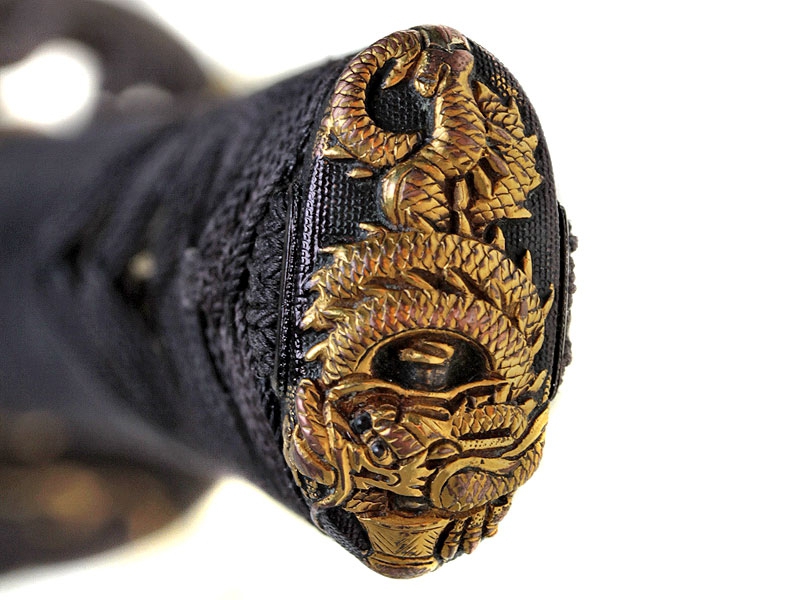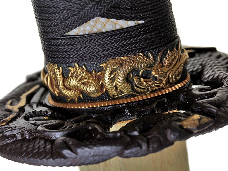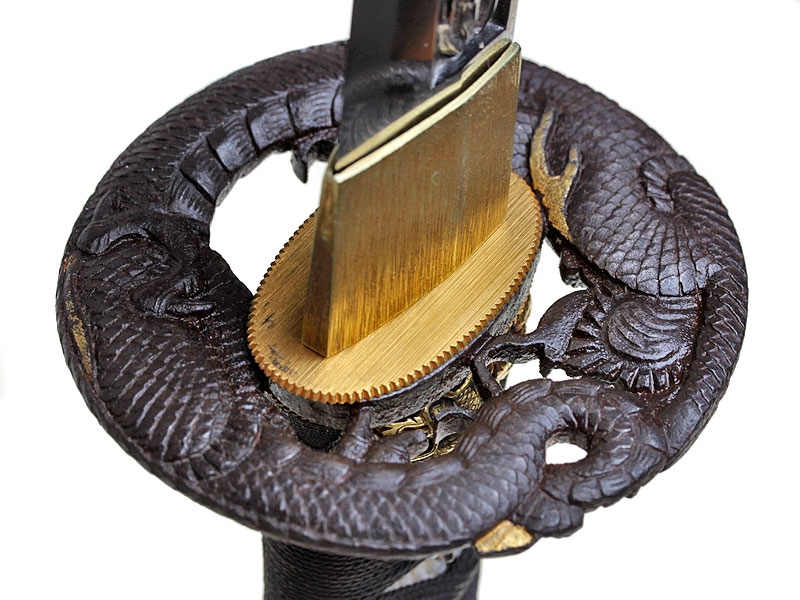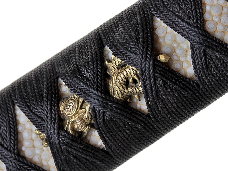 Большой самурайский меч катана работы мастера Хейндзё Масакуни, изготовленный в период с 1661 по 1672 год. Клинок с хорошо видимой линией закалки, украшен хоримоно - гравировкой с изображением дракона, хвостовик подписан мастером и имеет одно крепежное отверстие. Рукоять деревянная, обтянутая кожей ската и оплетена тесьмой. Цуба стальная, украшена прорезным изображением дракона. Рукоять изготовлена в период Эдо. Ножны современного изготовления, покрыты блестящим черным лаком. В комплект входят ножны сира-сайя для хранения клинка.