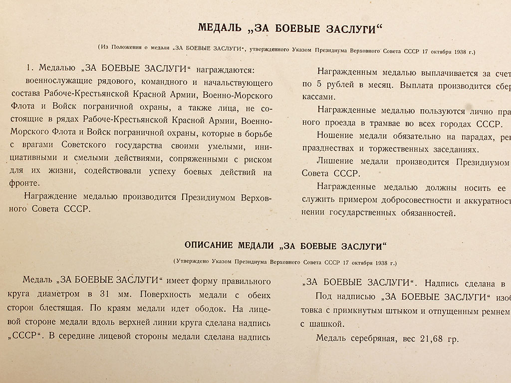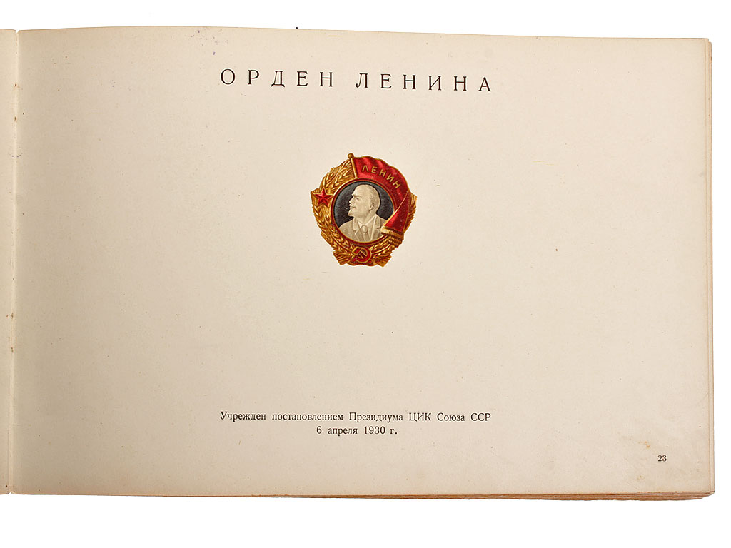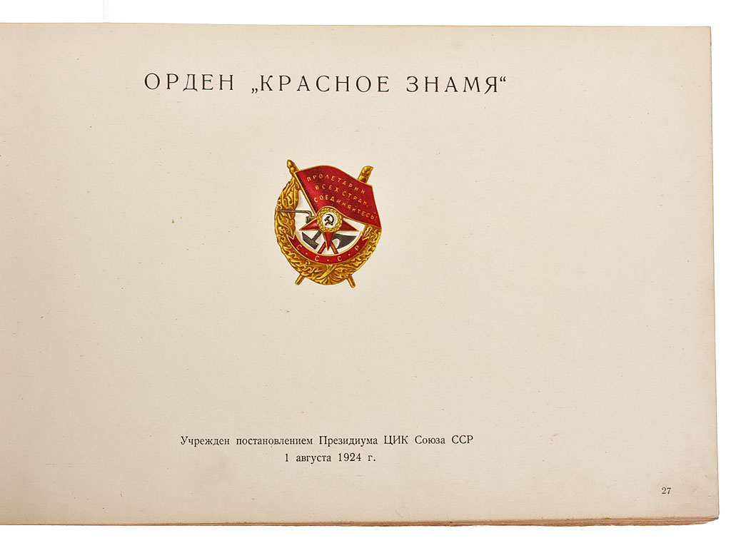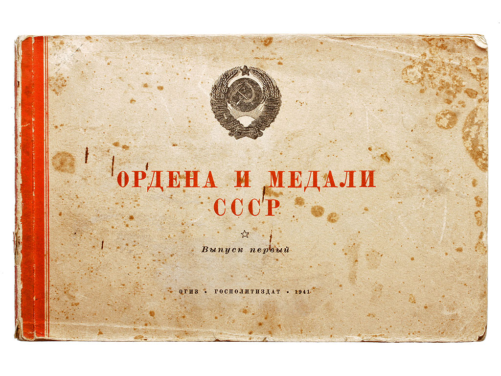 Книга "Ордена и медали СССР", выпуск первый, ОГИЗ "Госполитиздат". Книга отпечатана на фабрике "Гознак" в Москве в 1941 году и содержит изображения и положения обо всех утвержденных на тот момент государственных наградах и знаках отличия СССР.