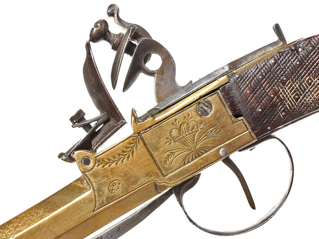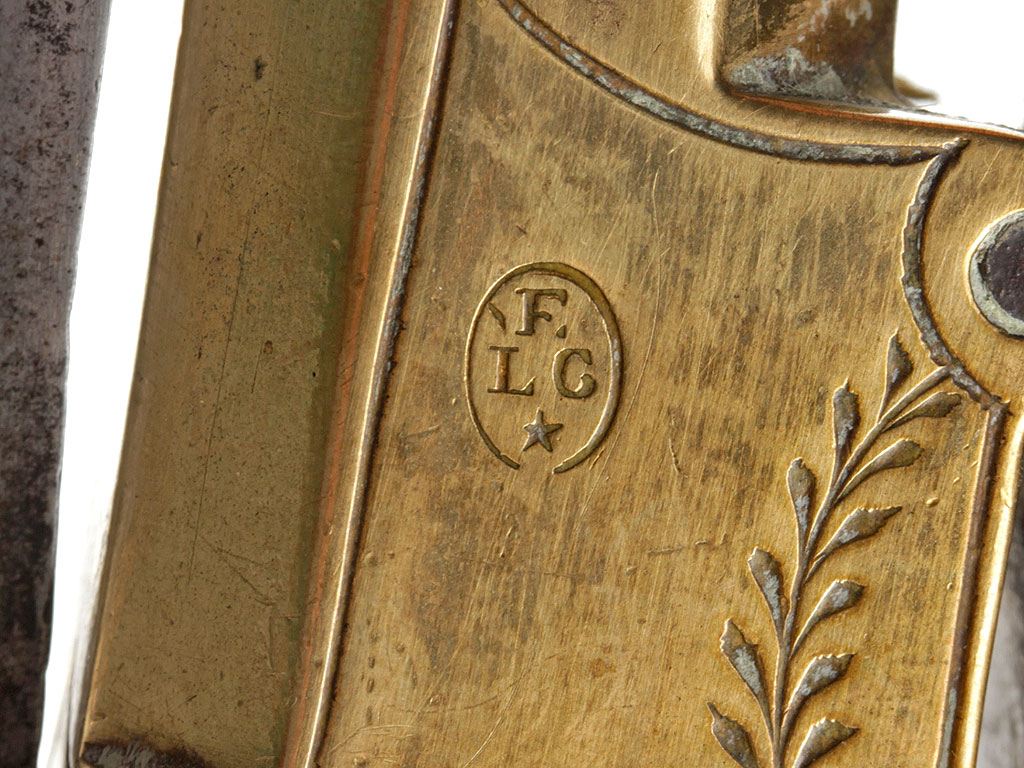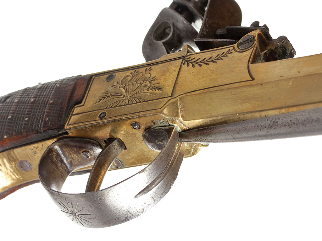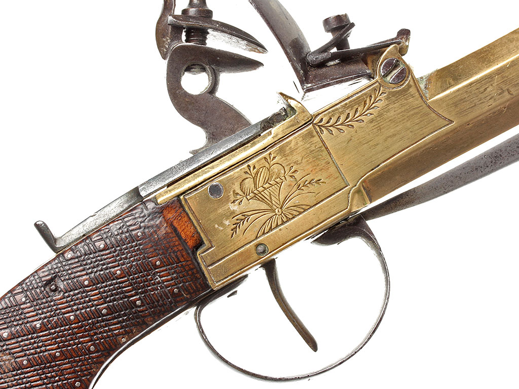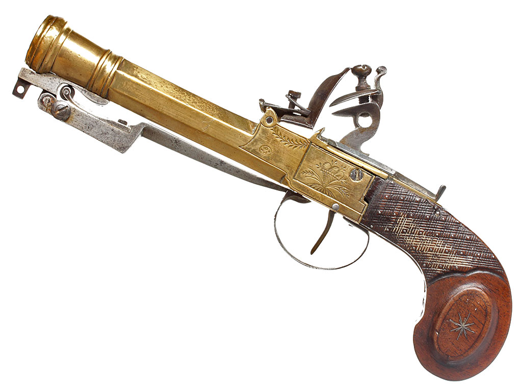 |Кремневый латунный пистолет с откидным штыком, Бельгия