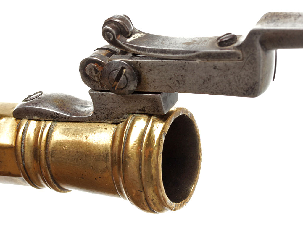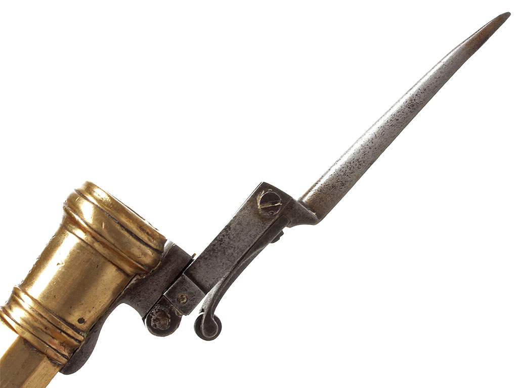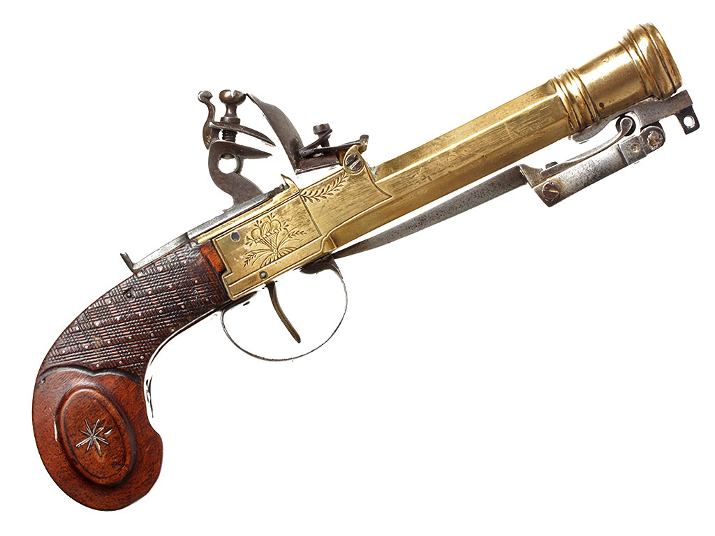 Кремневый латунный пистолет с откидным штыком, Бельгия