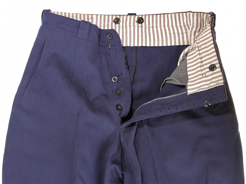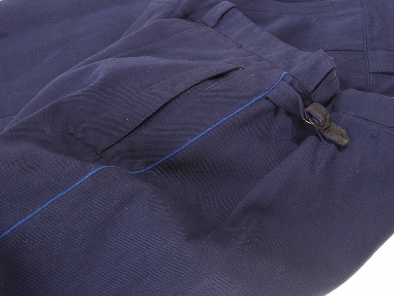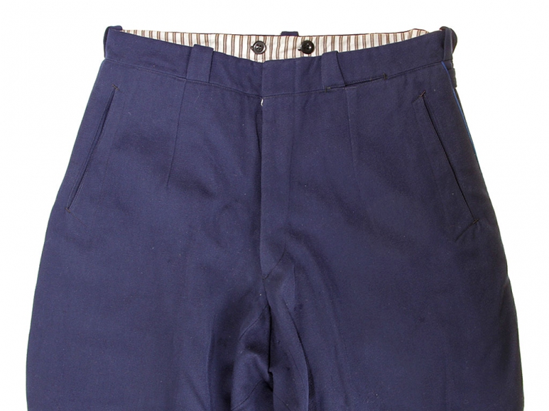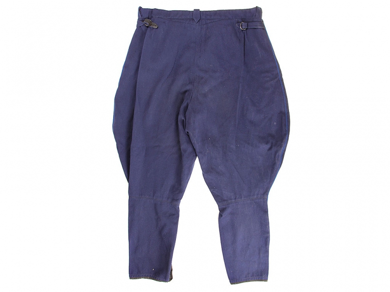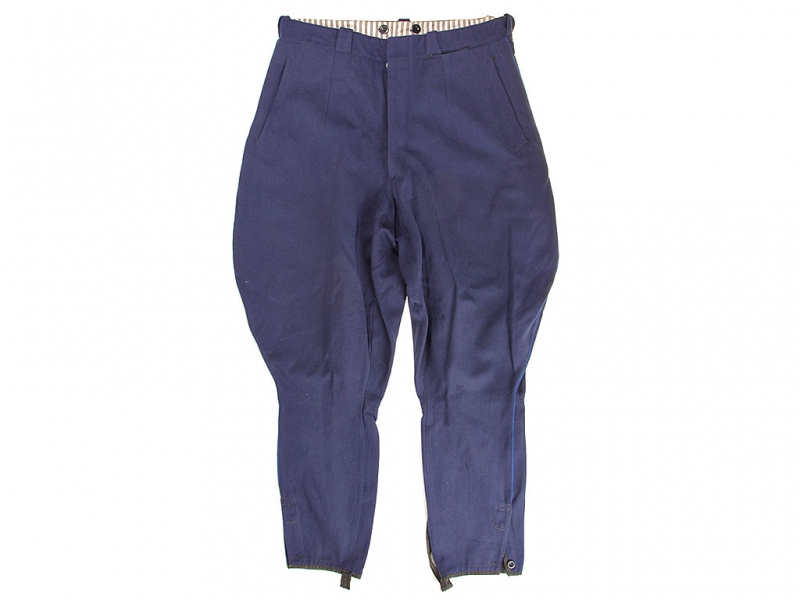 Синие диагоналевые галифе младшего комсостава НКВД образца 1943 года. Большой размер. Без клейм и бирок, пошиты в ателье в конце 1940-х годов. Хорошее состояние.
