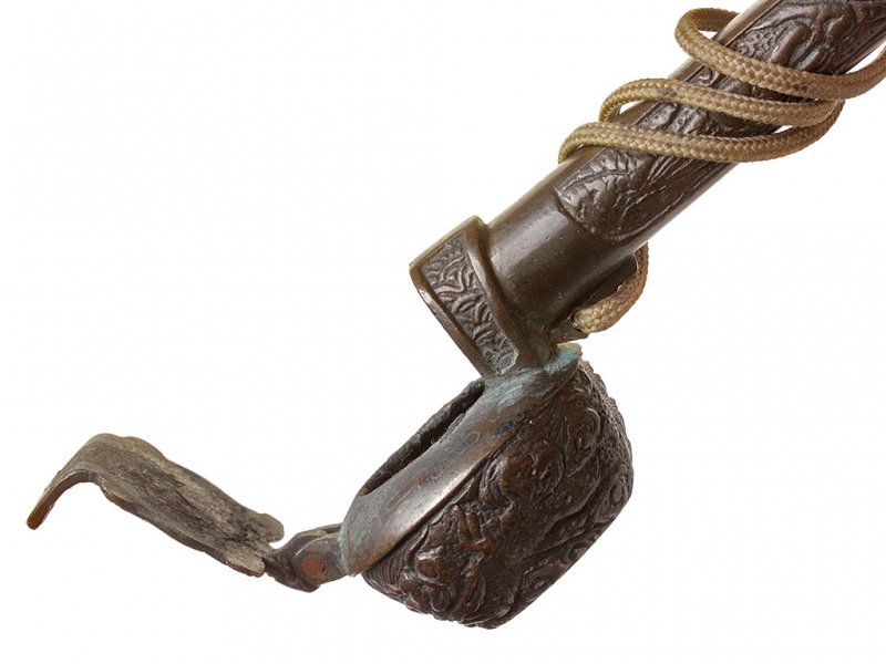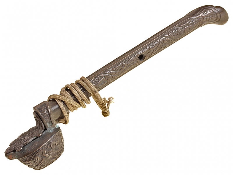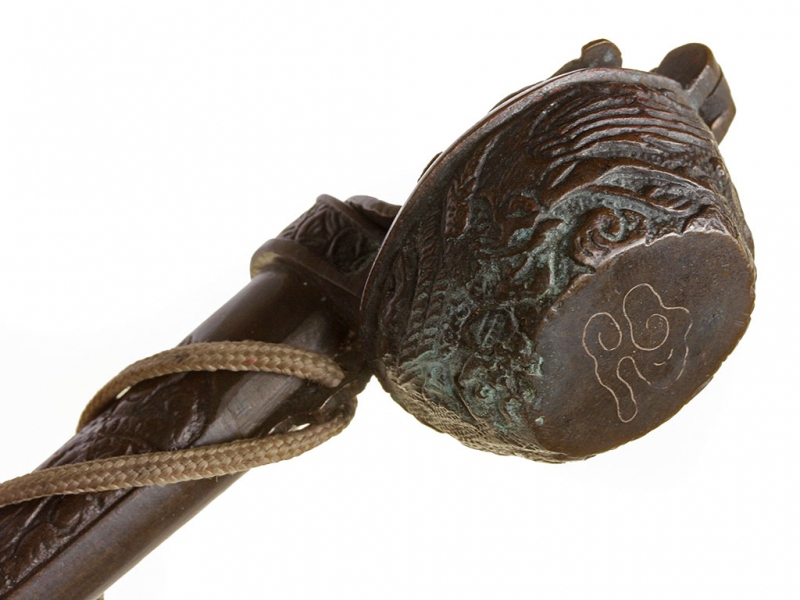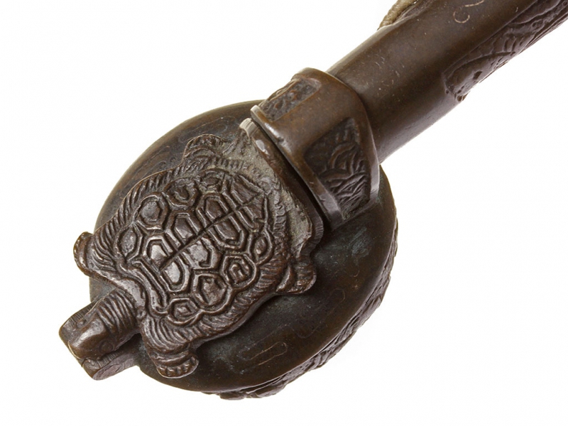 Традиционная бронзовая чернильница, изготовленная в период Мэйдзи. Устройство - типичное для японских походных чернильниц: емкость для чернил с откидывающейся крышкой и длинный пенал для кисточки.
