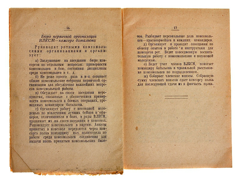 Карманная брошюра "Памятка комсоргу", изданная политотделом в 1943 году.