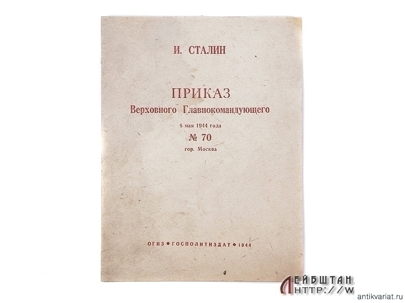 Брошюра "Приказ Верховного Главнокомандующего 1 мая 1944 года", Госполитиздат, 1944 год.