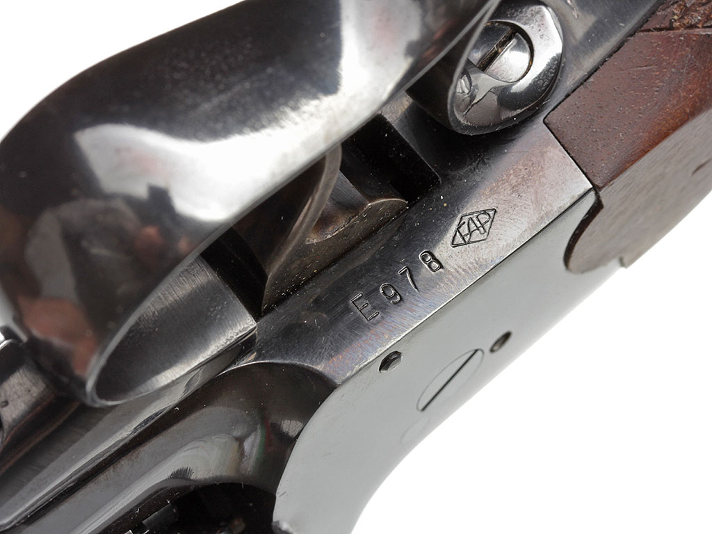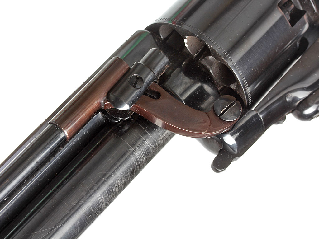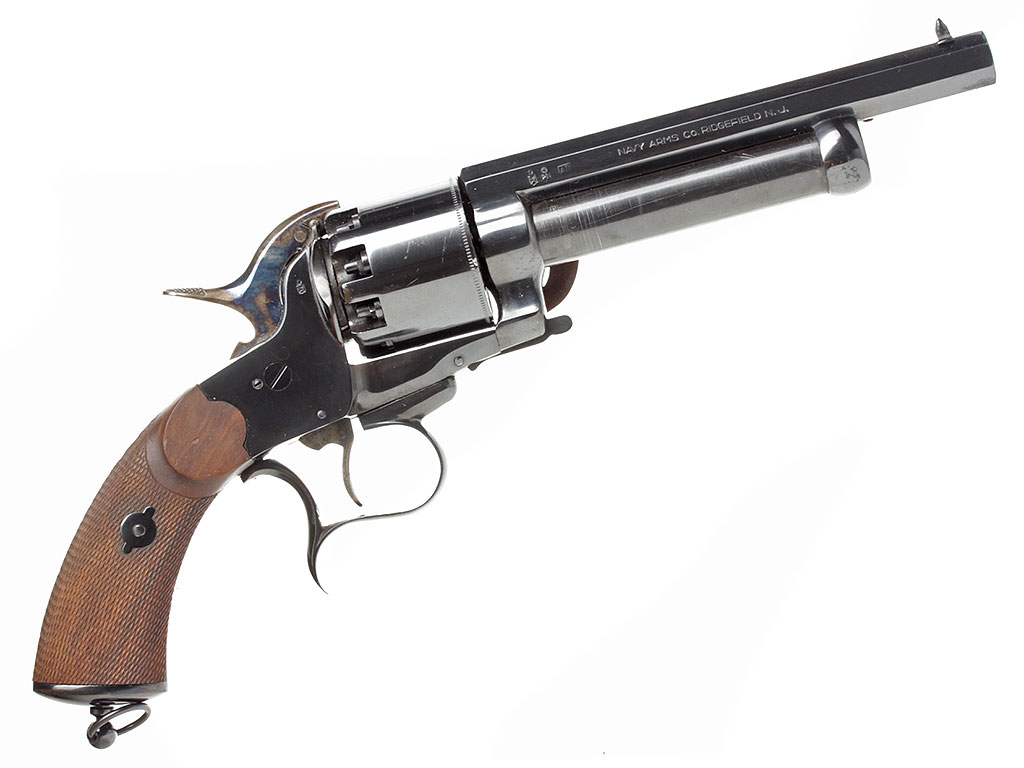 Капсюльный револьвер, представляющий собой точную копию легендарного револьвера Ле Ма периода гражданской войны в США. Изготовлен в наши дни по заказу компании Navy Arms Co итальянской фирмой - изготовителем точных действующих реплик старинного оружия F.Llipietta. Отличное состояние. качественное исполнение, полированное черное воронение, 44 калибр.