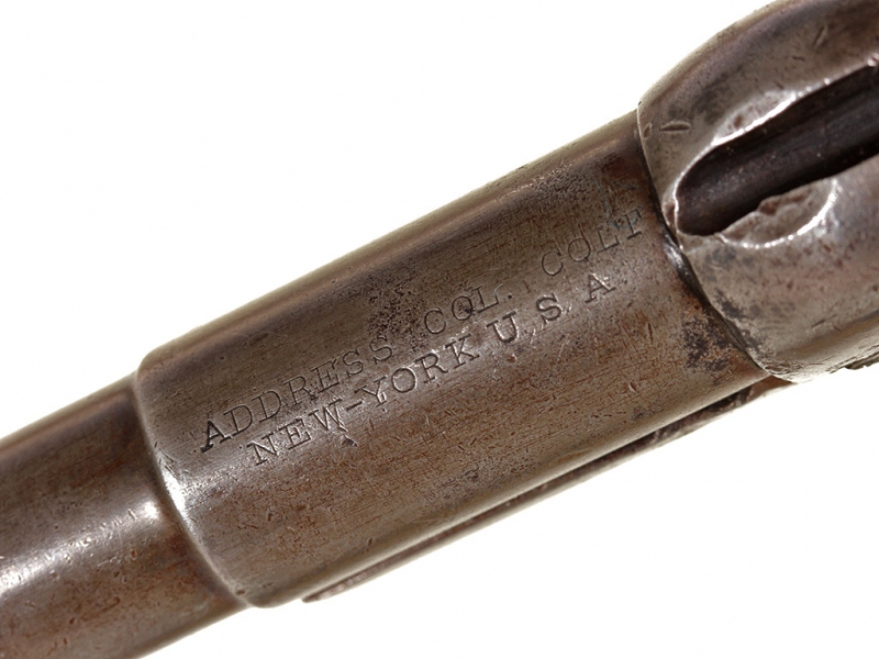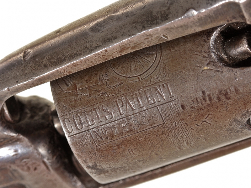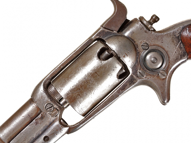 Капсюльный пятизарядный револьвер системы Кольта, карманная модель "Sidehammer" 1855 года. 28-й калибр. Корпус в хорошей сохранности, револьвер полностью исправен. Судя по серийному номеру (10356), изготовлен в 1856 году.