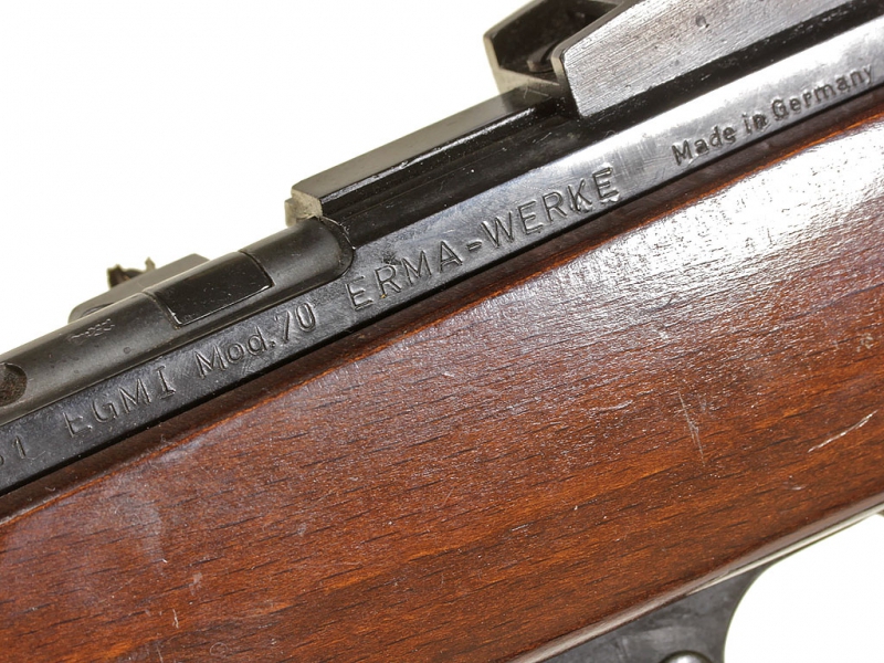 Нарезной мелкокалиберный полуавтоматический карабин Erma Werke Egm. 1 Mod.70 калибром .22lr. C отъемным 10-зарядным магазином. Очень хорошее состояние, на одном номере.