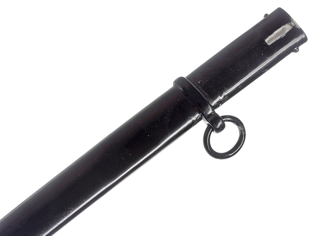 Ножны металлические, в черном красочном покрытии, гайкой с пдвижным кольцом для крепления к портупее. Отреставрированы (перегрунтованы и выкрашены) в наше время.