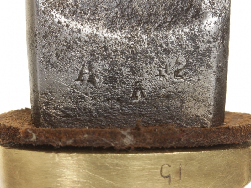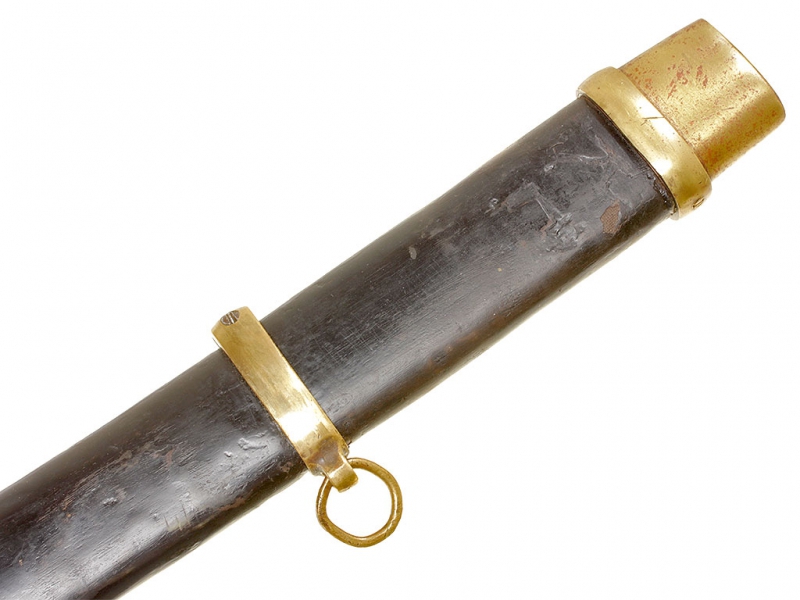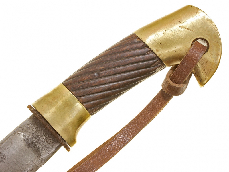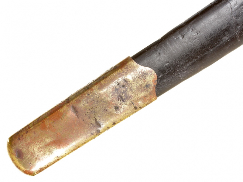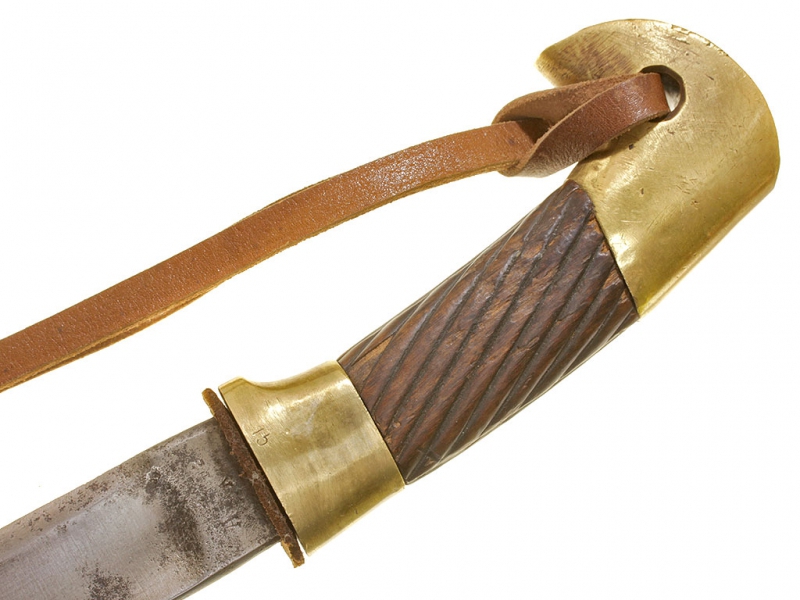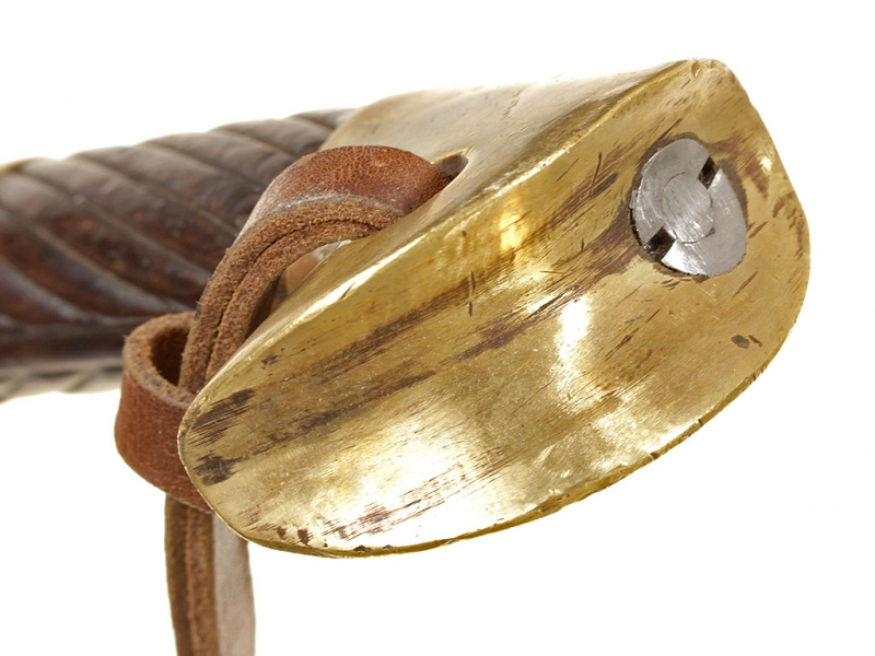 Рукоять деревянная, с продольными наклонными желобками. Прибор рукояти состоит из головки и нижней обоймицы. Головка рукояти латунная, раздвоенная, с отверстием для темляка (сам темляк - советского изготовления).