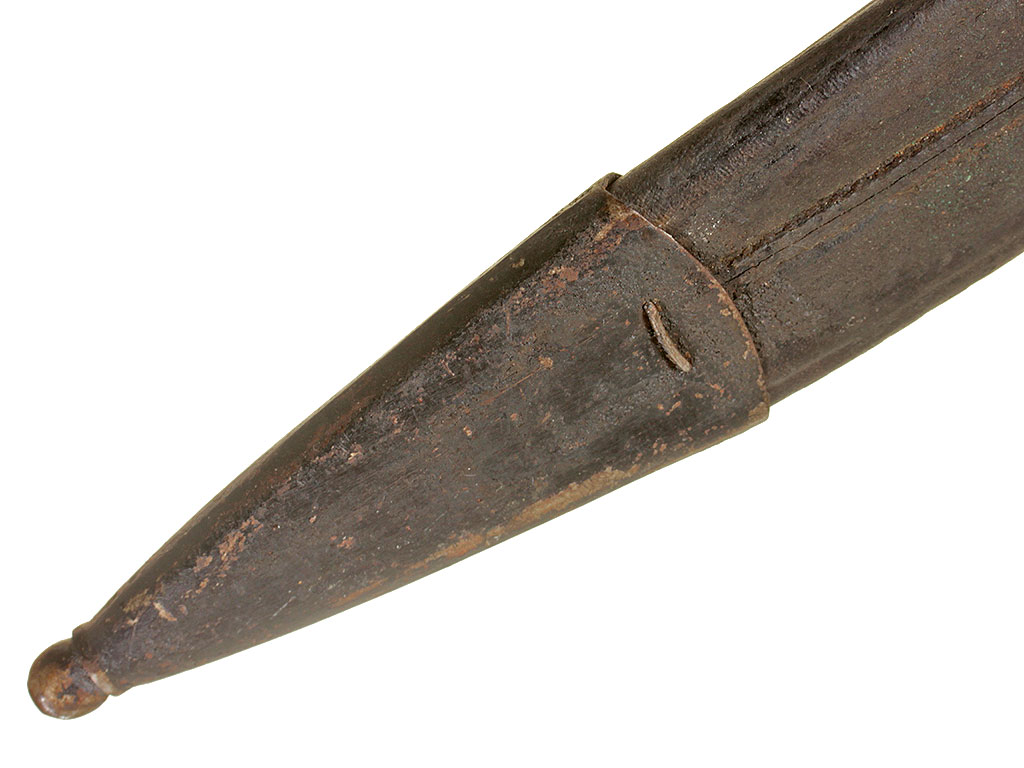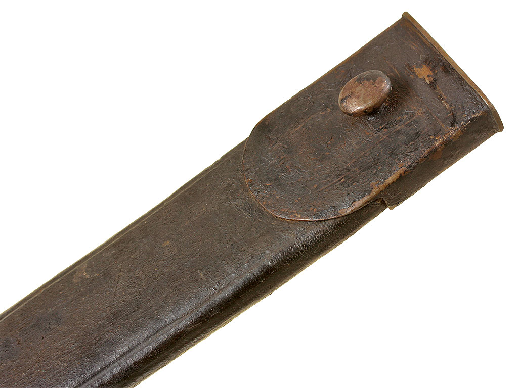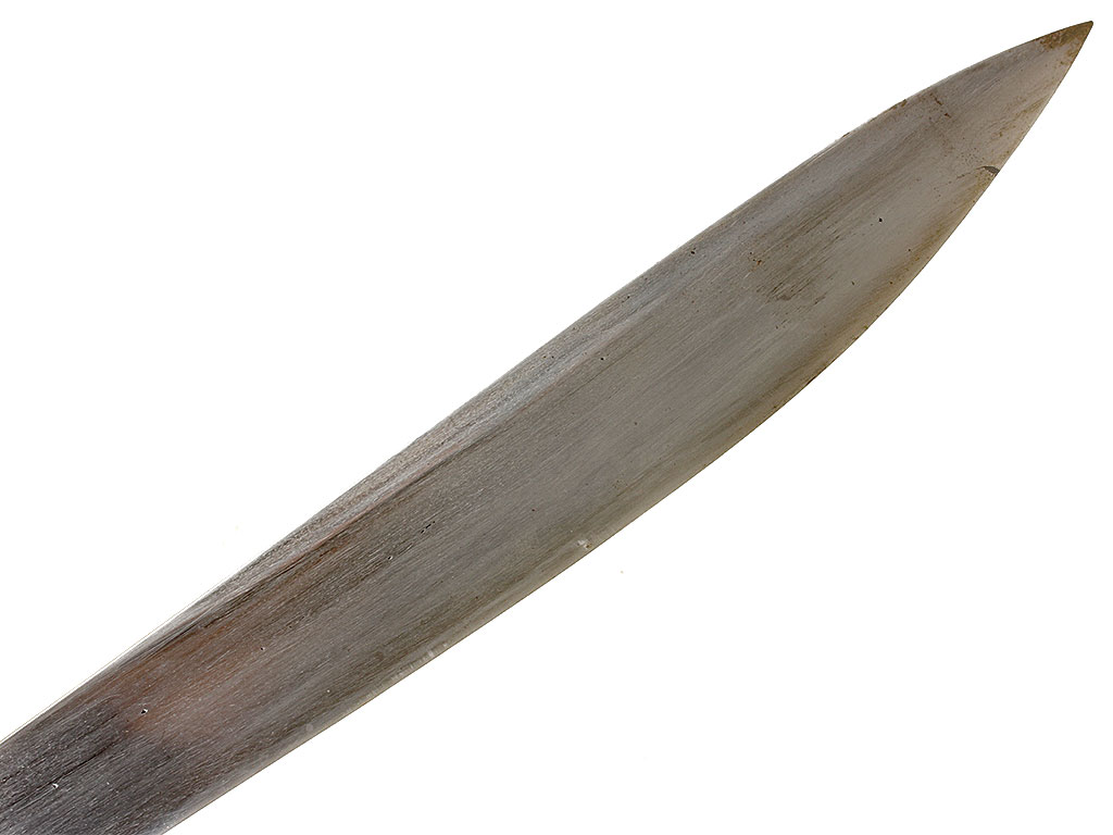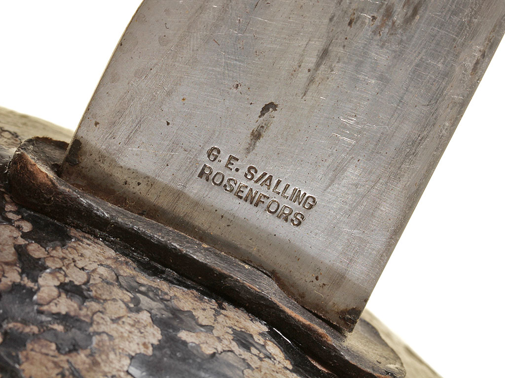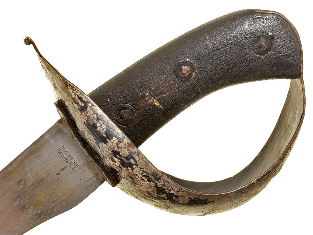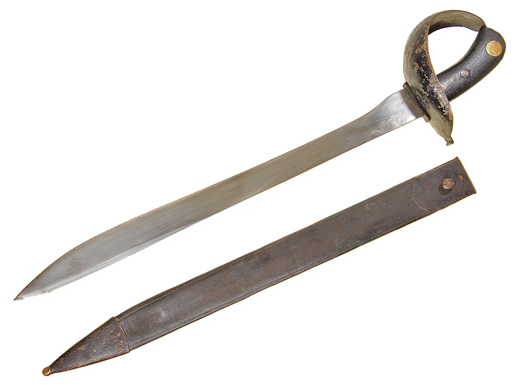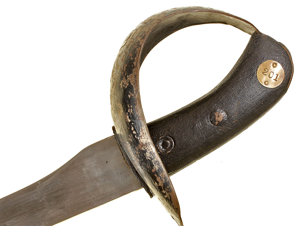 Тесак шведский абордажный, использовавшийся на флоте с 1851 года. Клинок прямой, расширяющийся к концу, без долов, с клеймом "G.E.S./ALLING ROSENFORS". Рукоять деревянная, выкрашенная в черный цвет. Вверху рукояти с лицевой стороны - латунная бирка с номером "201". Гарда стальная, выкрашенная в черный цвет. Ножны кожаные, со стальным прибором. Очень хорошее состояние.