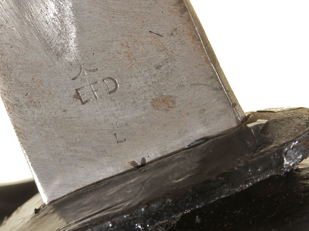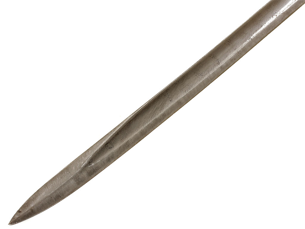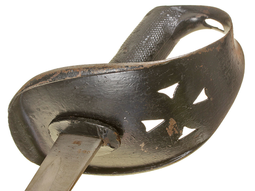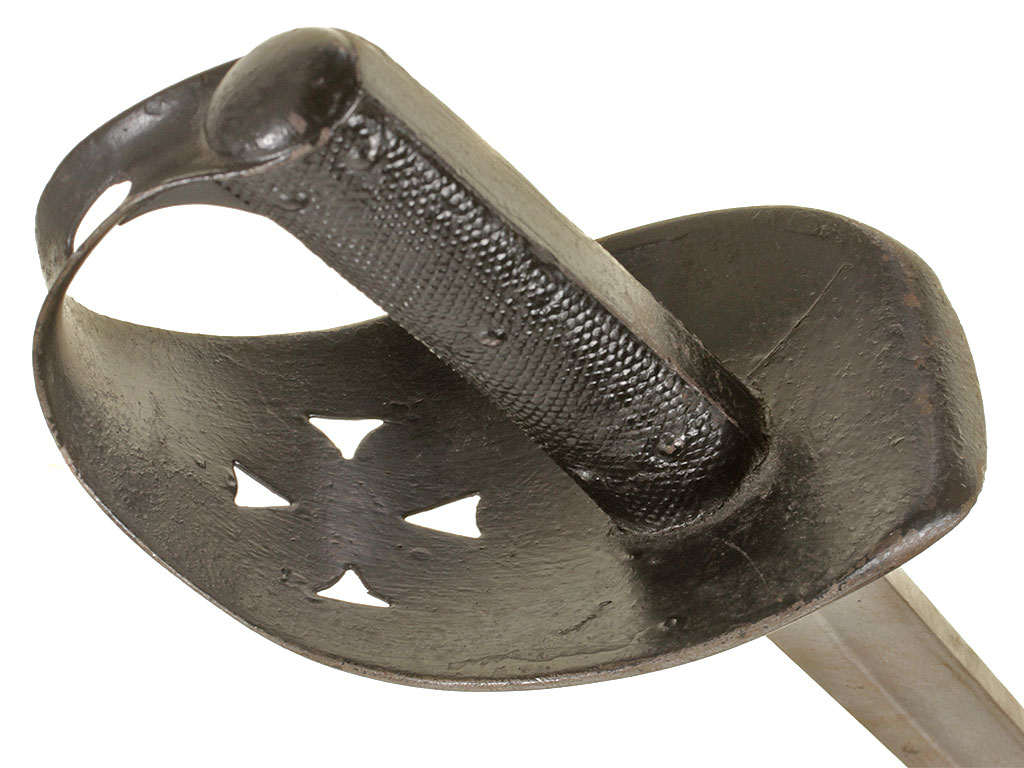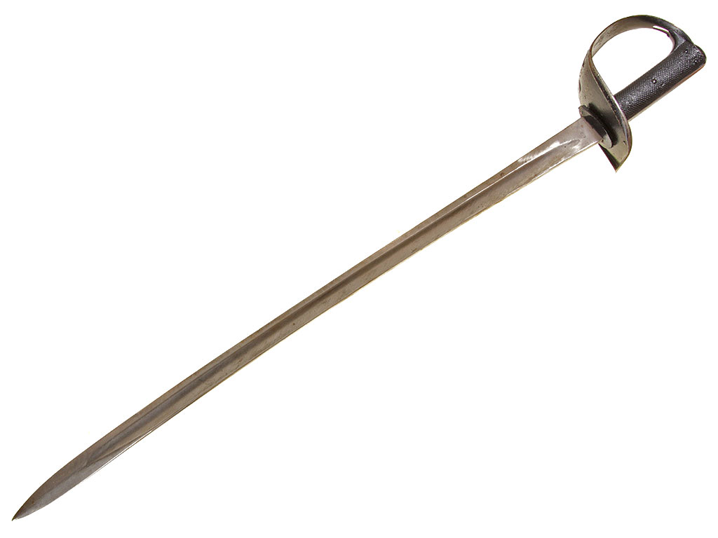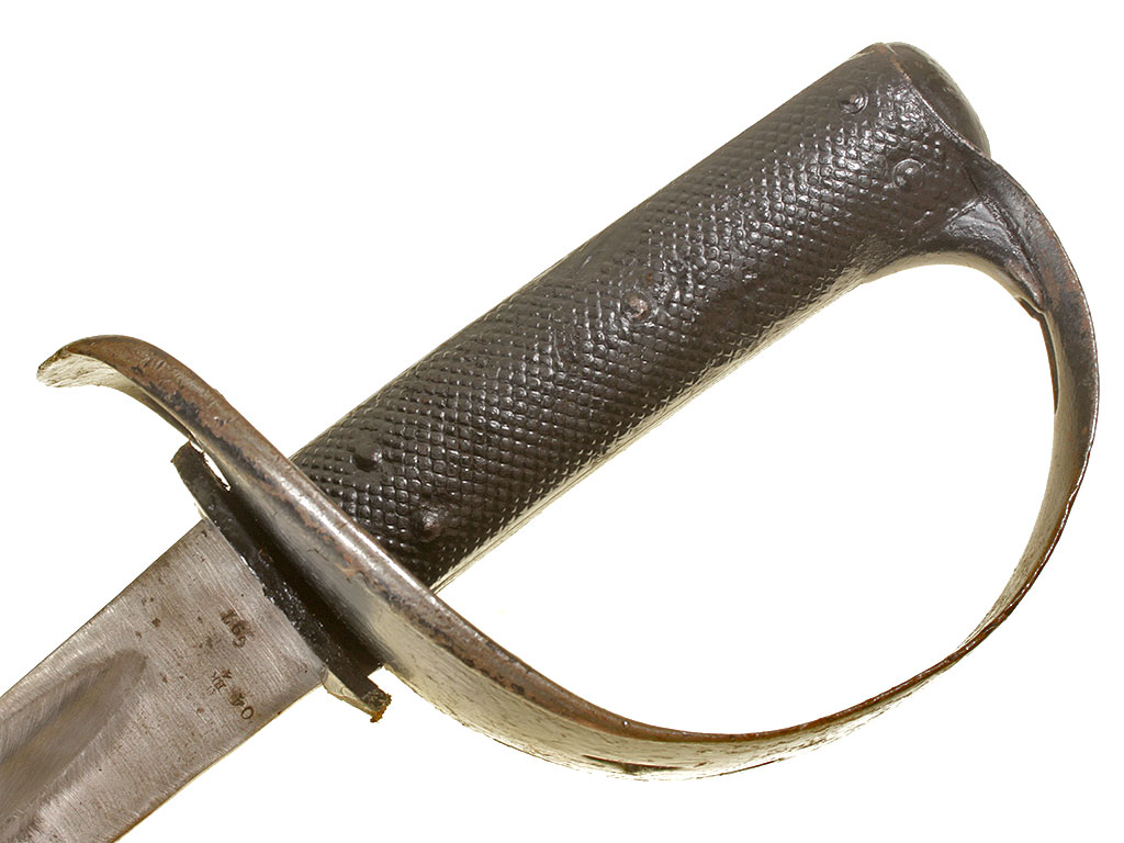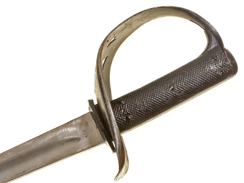 Английский тесак рядового состава кавалерии образца 1882 года (Cavalry troopers' sword). Клинок незначительной кривизны, почти прямой, с одним широким долом, однолезвийный (боевой конец двулезвийный). У основания клинка имеются клейма армейской принадлежности в виде стрелы, "EFD", приемочные клейма. Эфес состоит из рукояти и гарды. Рукоять образована двумя рифлеными щечками из прессованной черной кожи, скрепленными с хвостовиком клинка с помощью стальных заклепок. Гарда стальная, симметричная, выкрашенная в черный цвет; в центре - прорезное изображение креста с расширяющимися лопастями. Ножны отсутствуют.