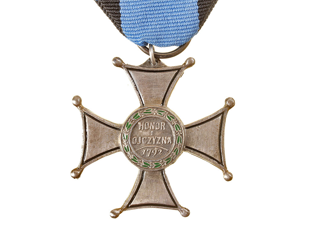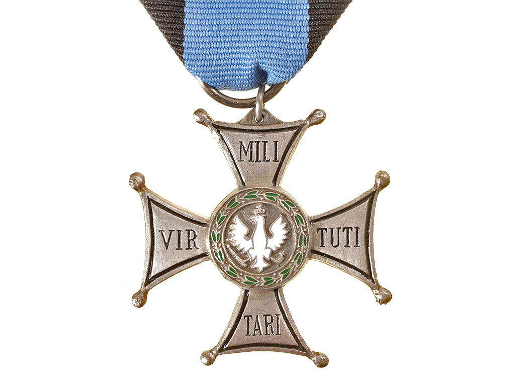 Орден Virtuti Militari (Орден воинской доблести) - самый почетный польский военный орден, который присуждается за выдающиеся боевые заслуги. Учрежден последним королем Речи Посполитой Станиславом Августом Понятовским 22 июня 1792 года в честь победы над российскими войсками в битве под Зеленцами во время русско-польской войны, упразднен в том же году самим королем по политическим мотивам. После разделов Речи Посполитой орден действовал в Варшавском герцогстве. Во время существования Царства Польского назывался "Орден войска польского", после восстановления польской независимости в 1918 году получил название "Орден военный Virtuti Militari". Вручается во время войны или в пятилетний срок после ее окончания президентом республики по предложению капитула ордена (действующий глава - Станислав Налеч-Коморницкий - погиб под Смоленском в авиакатастрофе самолета Ту-154 Президента Польши Л.Качиньского). В 1945 - 1989 годах Вооруженные силы Польши участвовали только в одном вооруженном конфликте, а после 1989 - в трех (Война в Персидском заливе, война в Афганистане и война в Ираке).