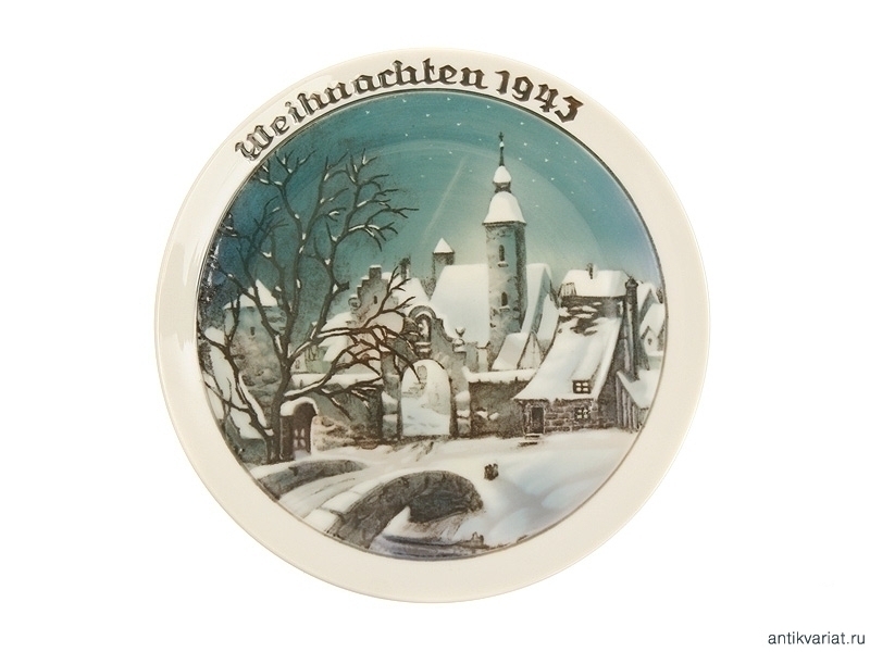 Декоративная настенная тарелка "Рождество 1943 года" . Изготовлена фабрикой "Розенталь". Диаметр 22,5 см. Отличное состояние.