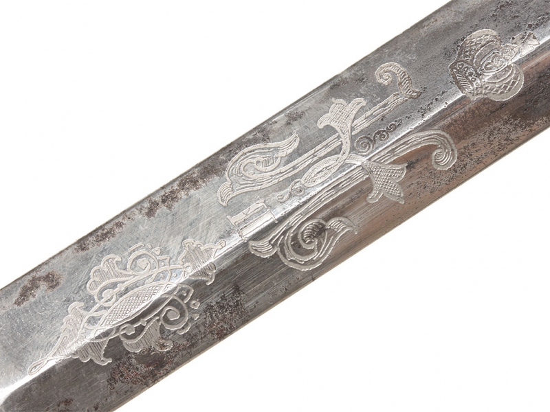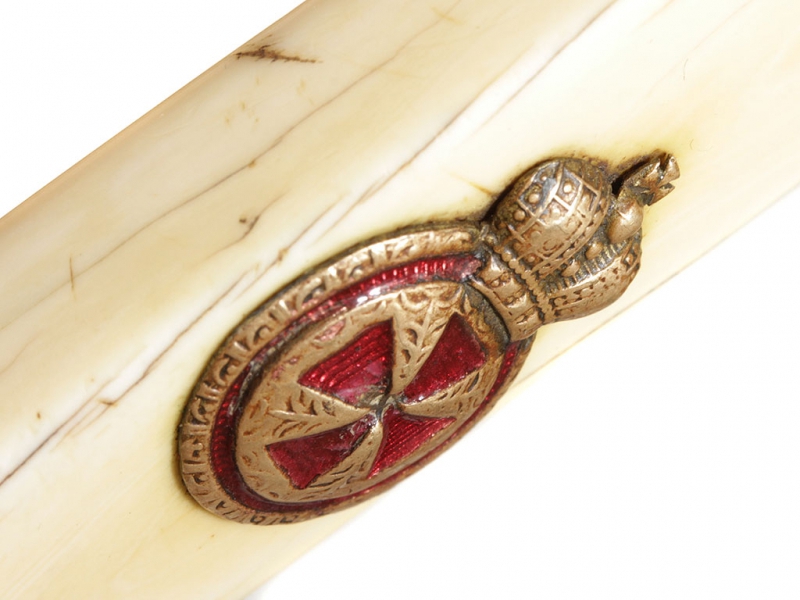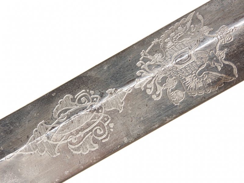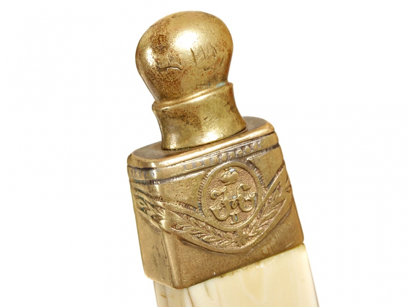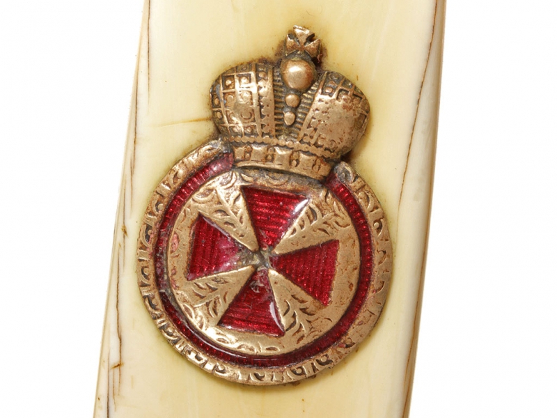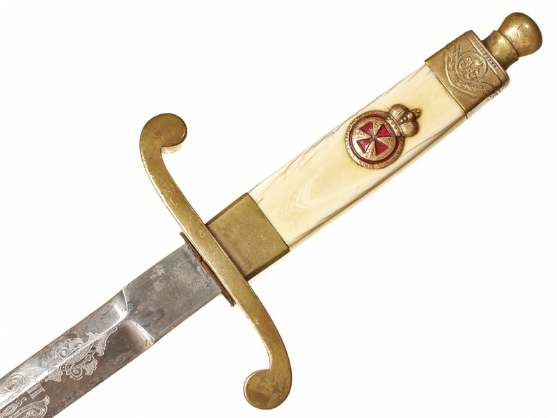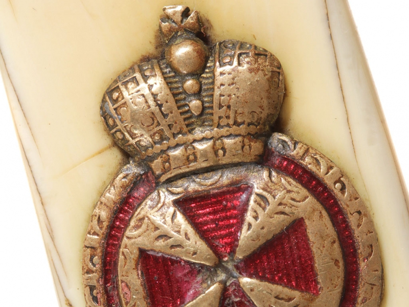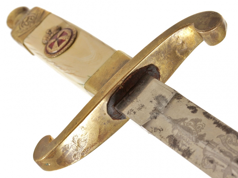 Такие кортики чаще всего атрибутируются как морские, хотя на самом деле в годы Первой мировой их носили преимущественно военные чиновники и пехотные офицеры в окопах. В представленном экземпляре обращает на себя внимание изначальное отсутствие надписи "За храбрость" на гарде, типичной для Аннинского оружия. Такие экземпляры изредка встречаются: они принадлежали тем, кто был награжден орденом Св. Анны IV степени (знак ордена крепился на оружие), но не принимал непосредственного участия в боевых действиях. В данном случае с большой долей вероятности можно говорить о военном враче.