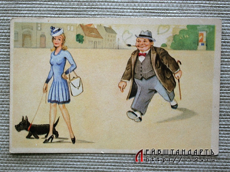 Довоенная открытка с юмористическим сюжетом. Оборотная сторона не заполнена, можно отправить по почте.